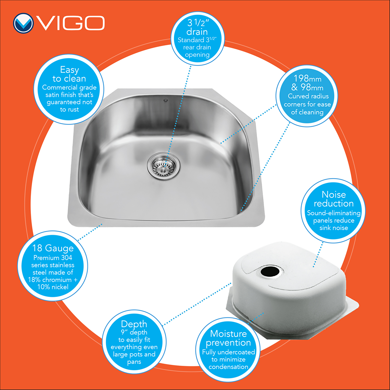 The VIGO undermount kitchen sink, matching grid and strainer complement any decor and are highly functional.