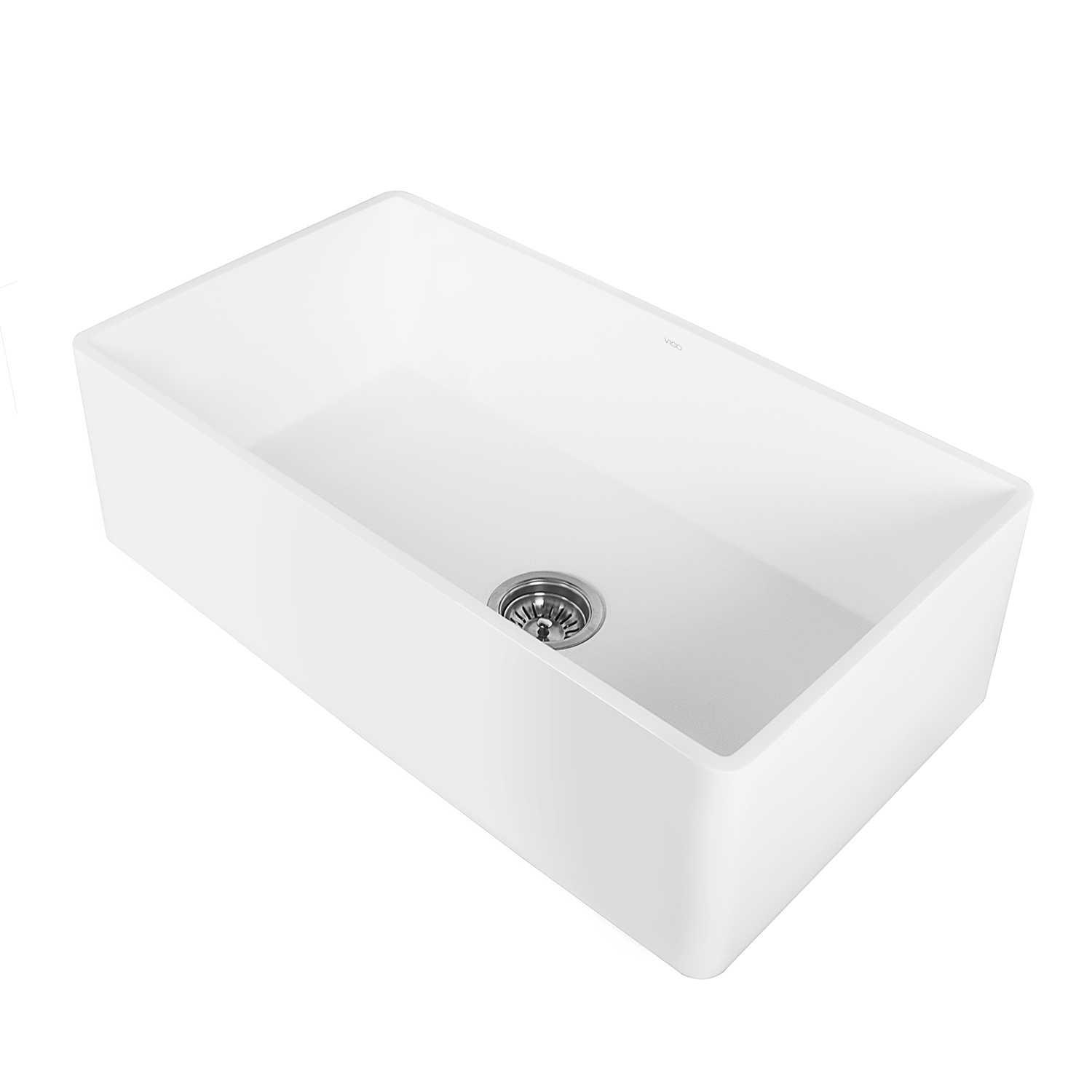 VIGO Matte Stone Farmhouse Sinks have impressive looks that stand the test of time. Nonporous and solid core, you’ll never see chips exposing an ugly porous sub-layer. The seamless matte surface resists stains and can even be sanded without damaging the finish.