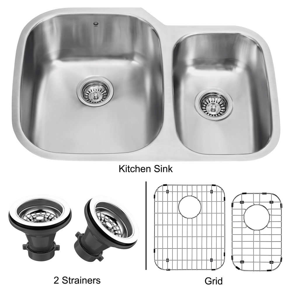 The VIGO double bowl kitchen sink, matching grids and strainers complement any decor and are highly functional.