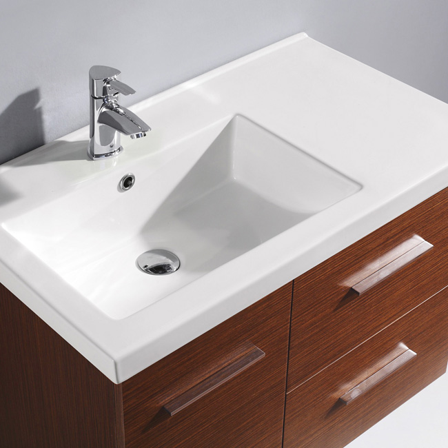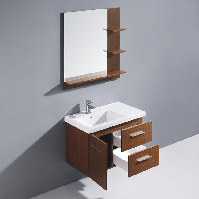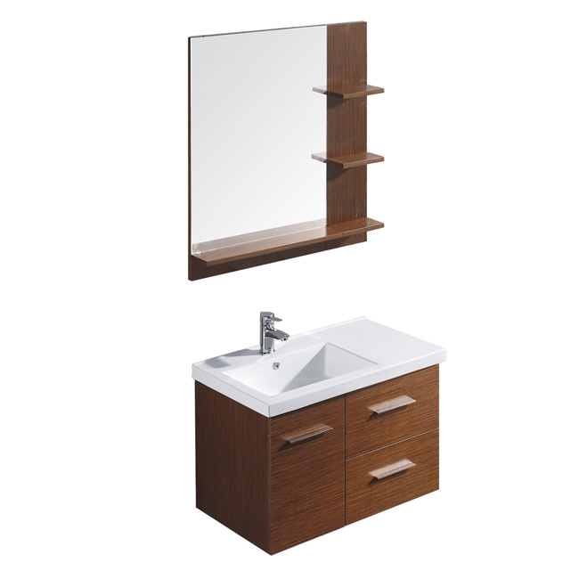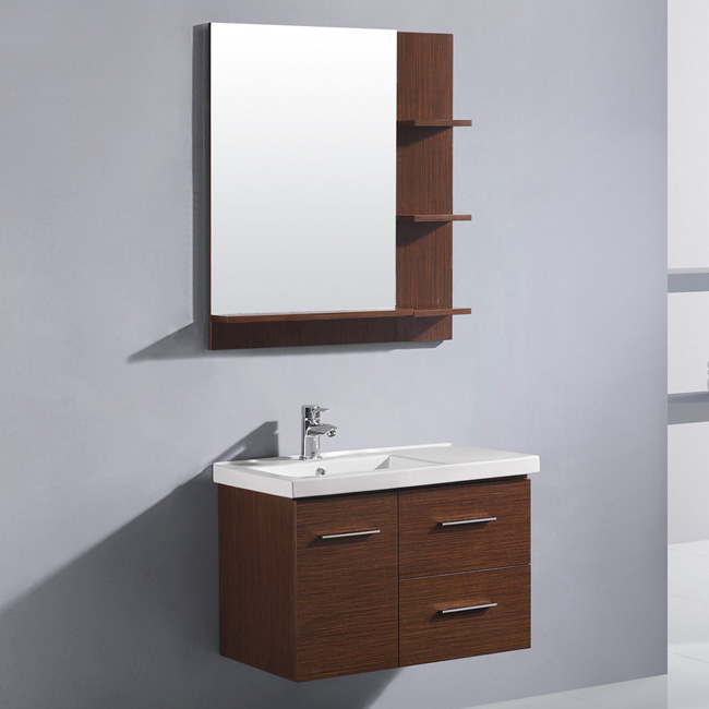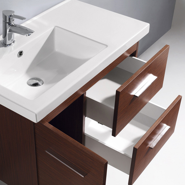 wenge finish with two drawers and one cabinet under the sink.