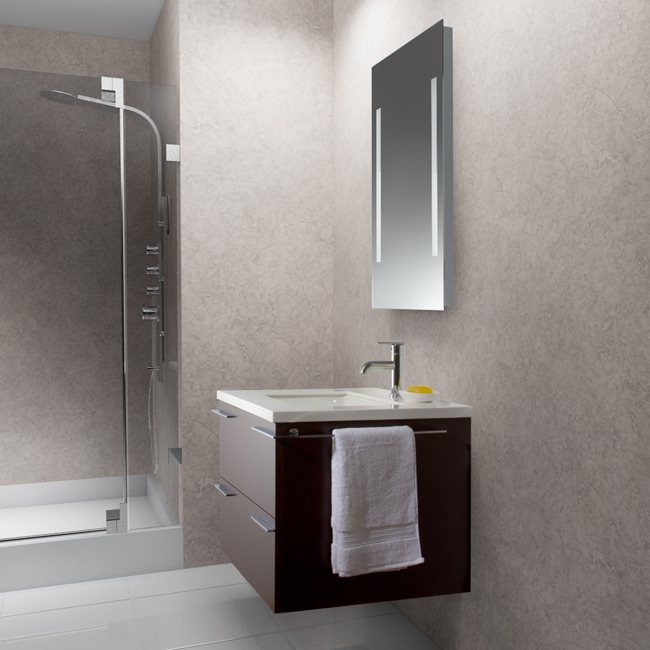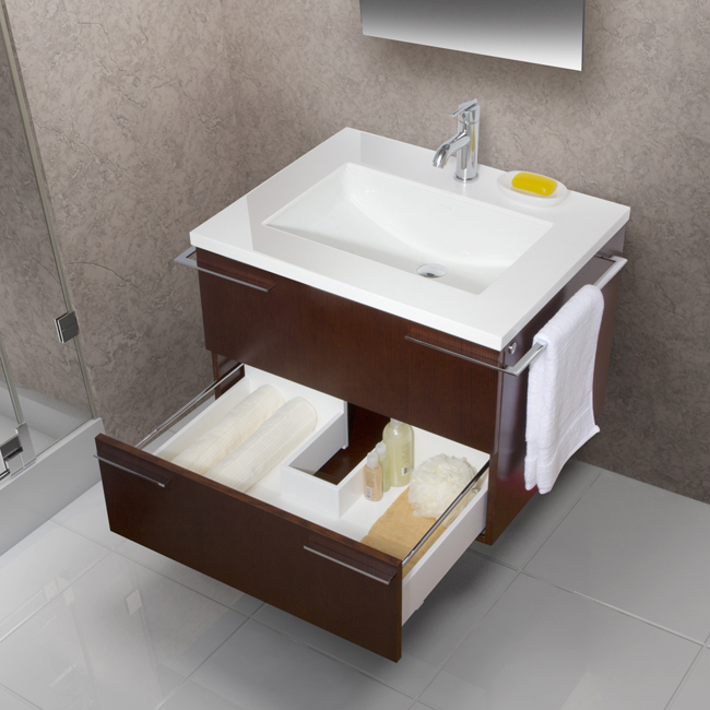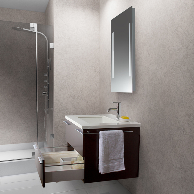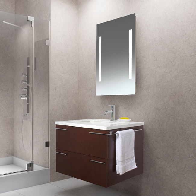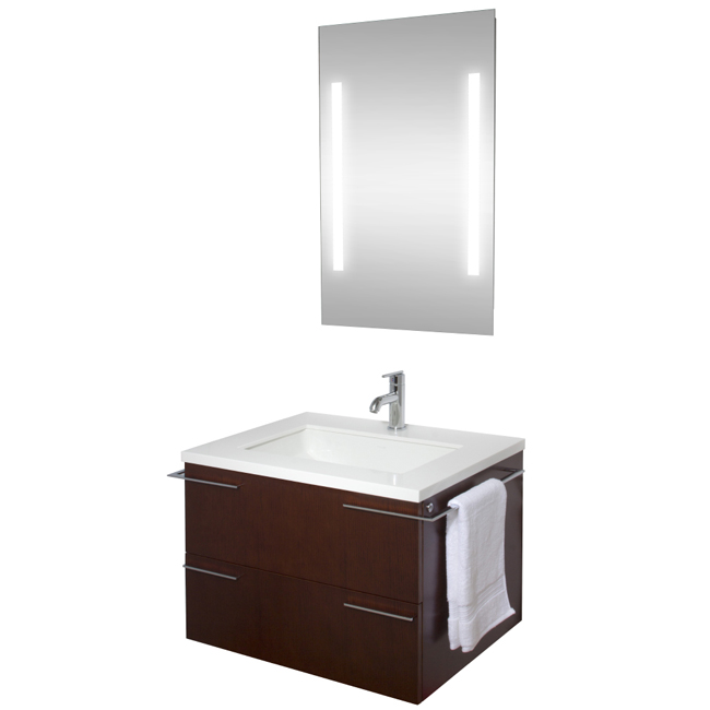 Vanity is fabricated for wall mount installation with all mounting hardware included