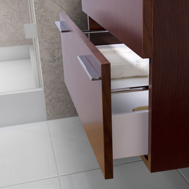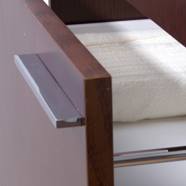 Includes a 90-degree wrap around hand towel rack on each side of the cabinet