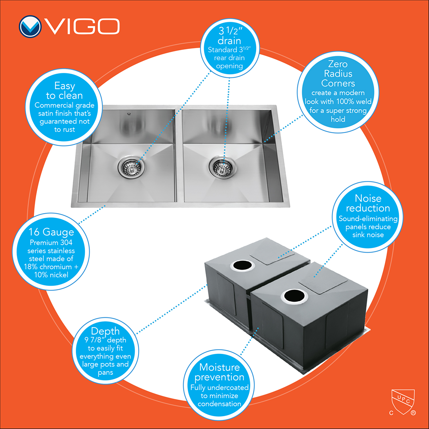 All VIGO kitchen sinks are guaranteed to never rust