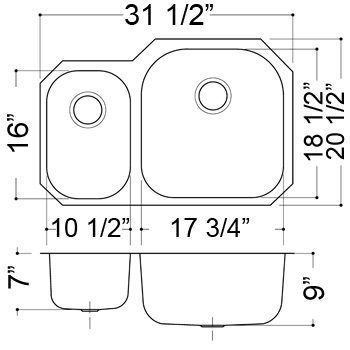 Exterior dimensions: 31 1/2" W x 20 1/2" D
