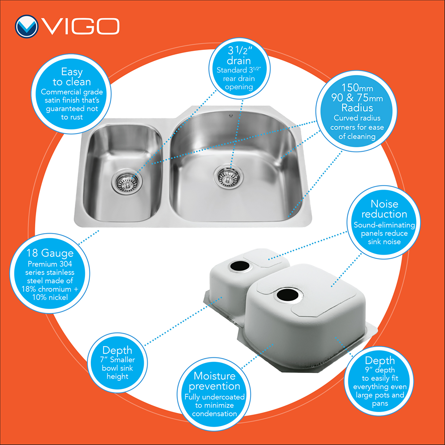 All VIGO kitchen sinks are guaranteed to never rust