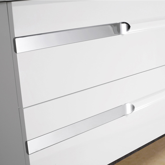soft closing hardware and artistic chrome pull accents.