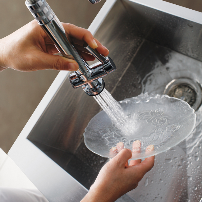 Rear standard 3 1/2" drain placement which provides maximum storage and cabinet space