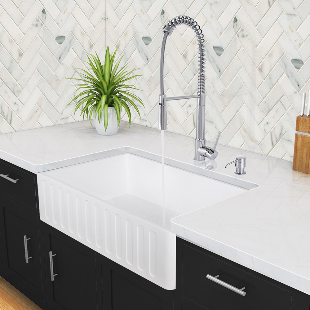 VIGO Matte Stone Farmhouse Sinks have impressive looks that stand the test of time. Nonporous and solid core, you’ll never see chips exposing an ugly porous sub-layer. The seamless matte surface resists stains and can even be sanded without damaging the finish.