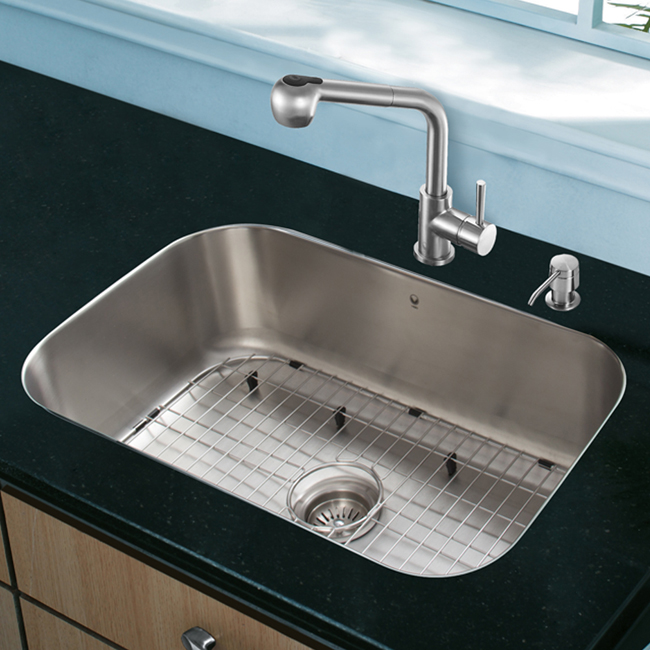 Breathe new life into your kitchen with a VIGO All in One Kitchen Set featuring a 23" Undermount kitchen sink, faucet, soap dispenser, matching bottom grid, and sink strainer.