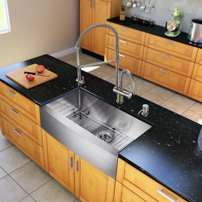Modernize the look of your entire kitchen with a VIGO All in One Kitchen Set featuring a 33" Farmhouse - Apron Front kitchen sink, faucet, soap dispenser, matching bottom grid and sink strainer.