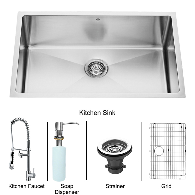 Breathe new life into your kitchen with a VIGO All in One Kitchen Set featuring a 30" Undermount kitchen sink, faucet, soap dispenser, matching bottom grid and sink strainer.