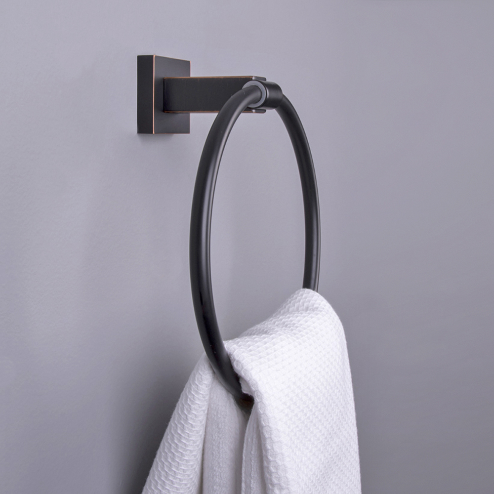 The VIGO Allure Square Design Hand Towel Ring in Antique Rubbed Bronze will allow you to easily keep a towel within reach.