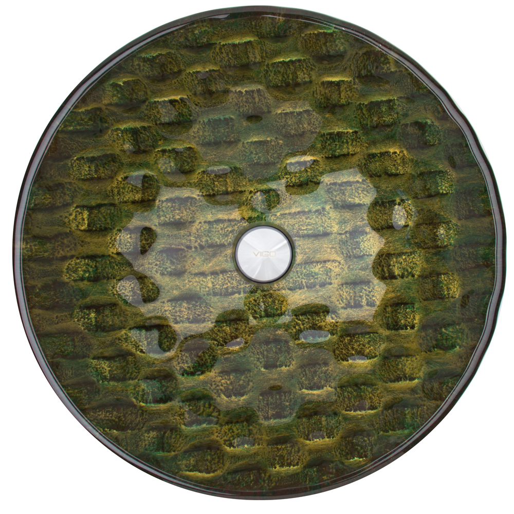 Bring the lush green of the Amazon into your bathroom with the VIGO Amazonia vessel sink. The green weave pattern of the Amazonia has hints of yellow and gold making it glisten in your bathroom like the rainforest after a morning shower.