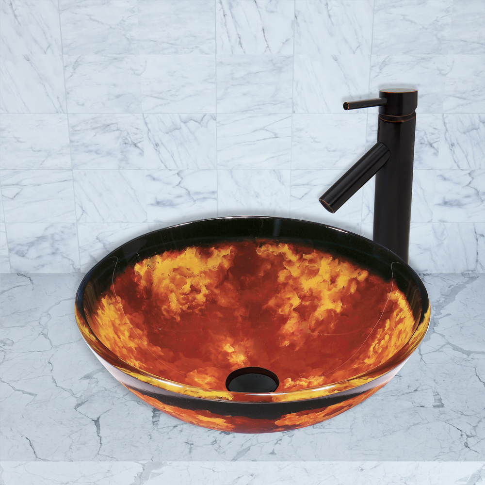 The VG07005 Auburn/Mocha Fusion glass vessel bowl features a perfect combination of brownish-red and gold tones topped with a rich shade of mocha.