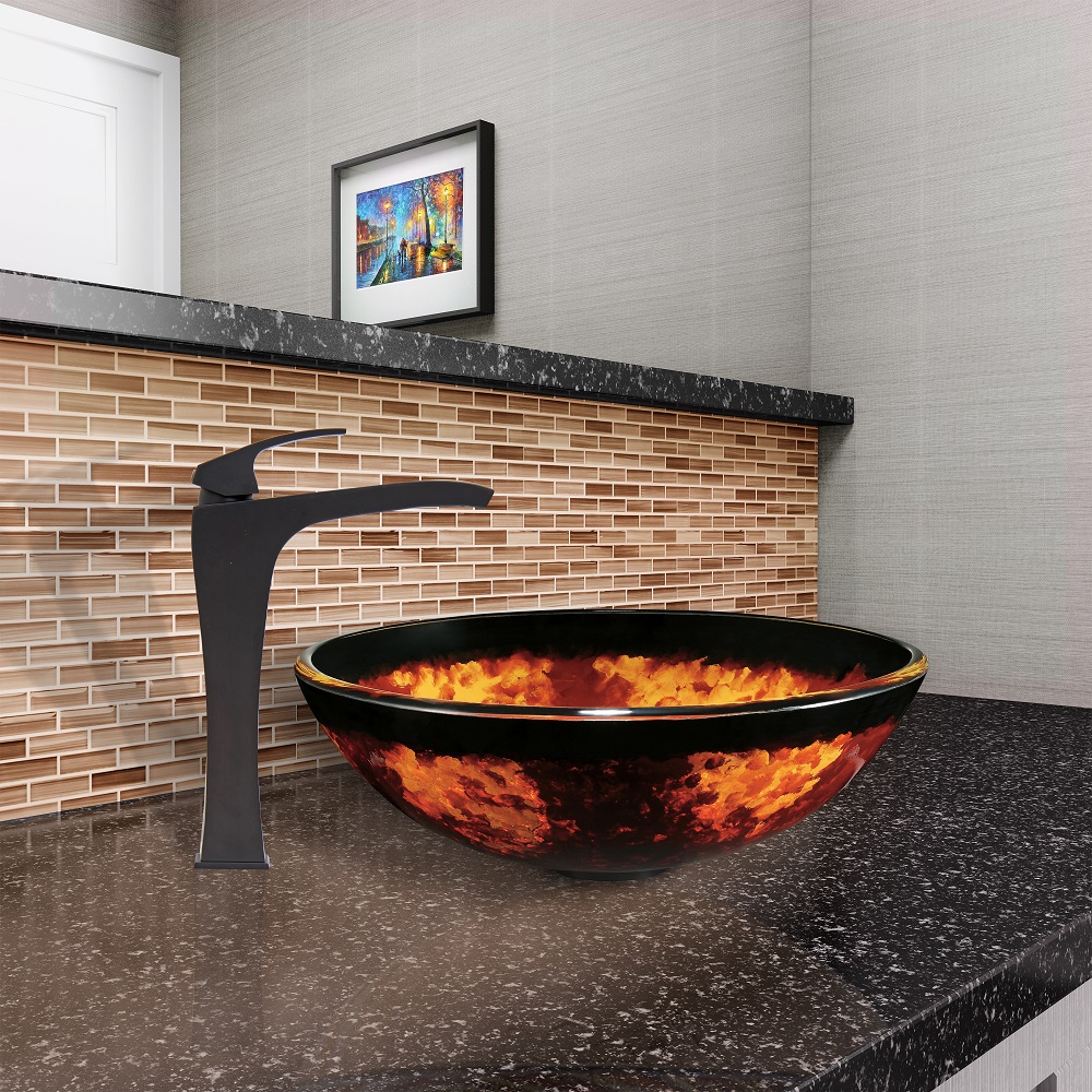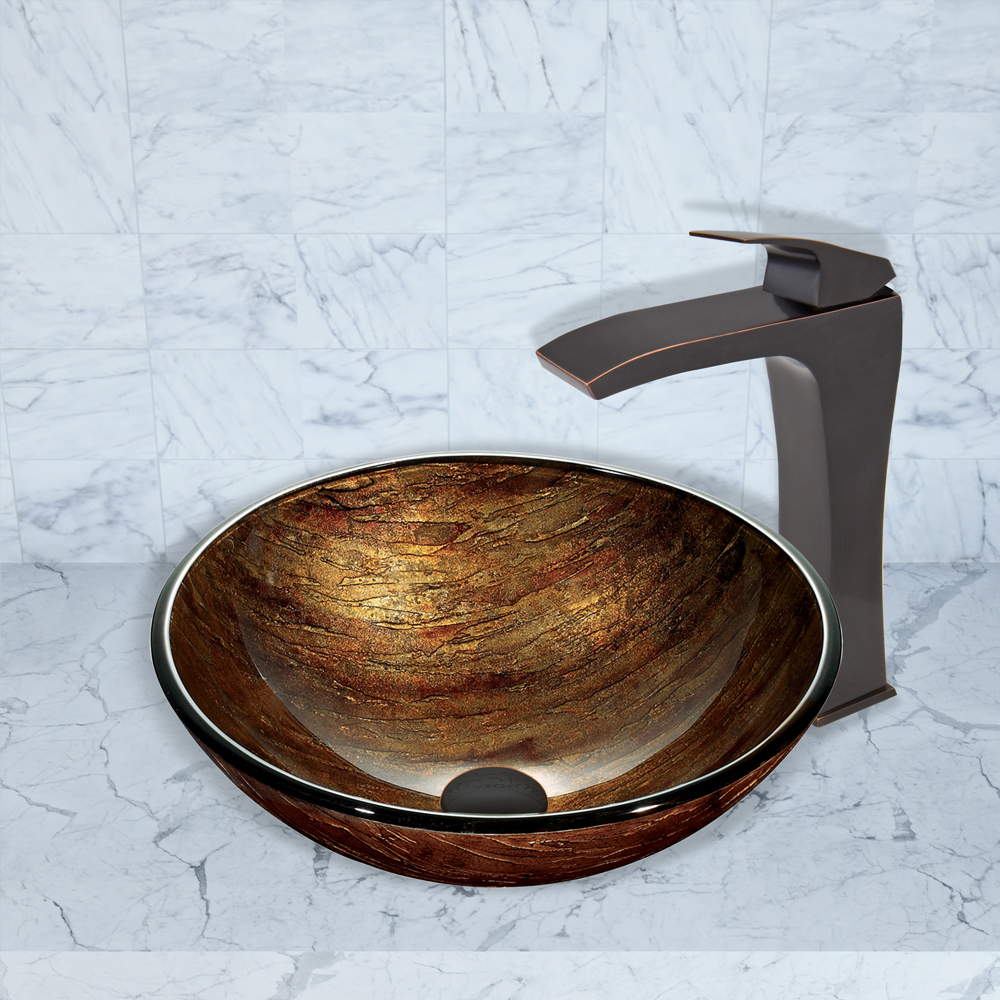 The Blackstonian vessel faucet compliments any vessel sink with it's lovely antique rubbed bronze finish.