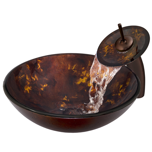 The VIGO Brown and Gold Fusion glass vessel sink and