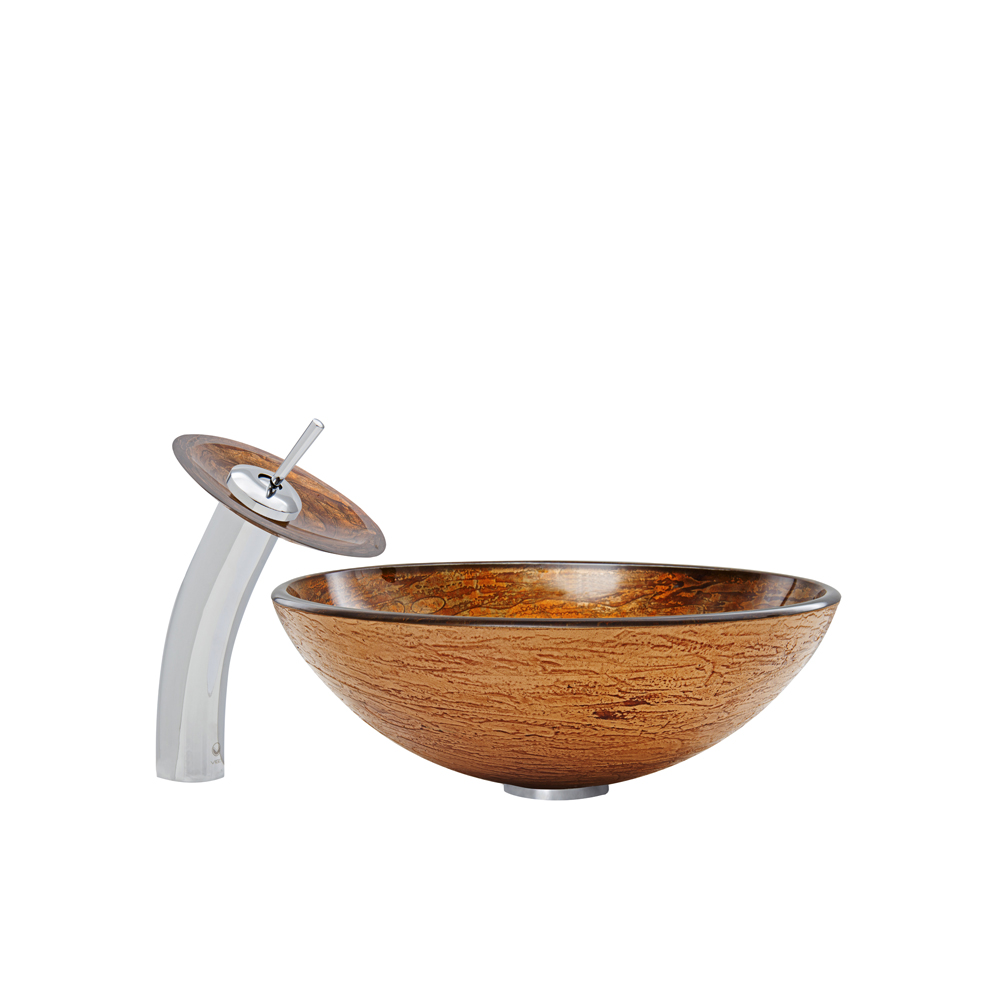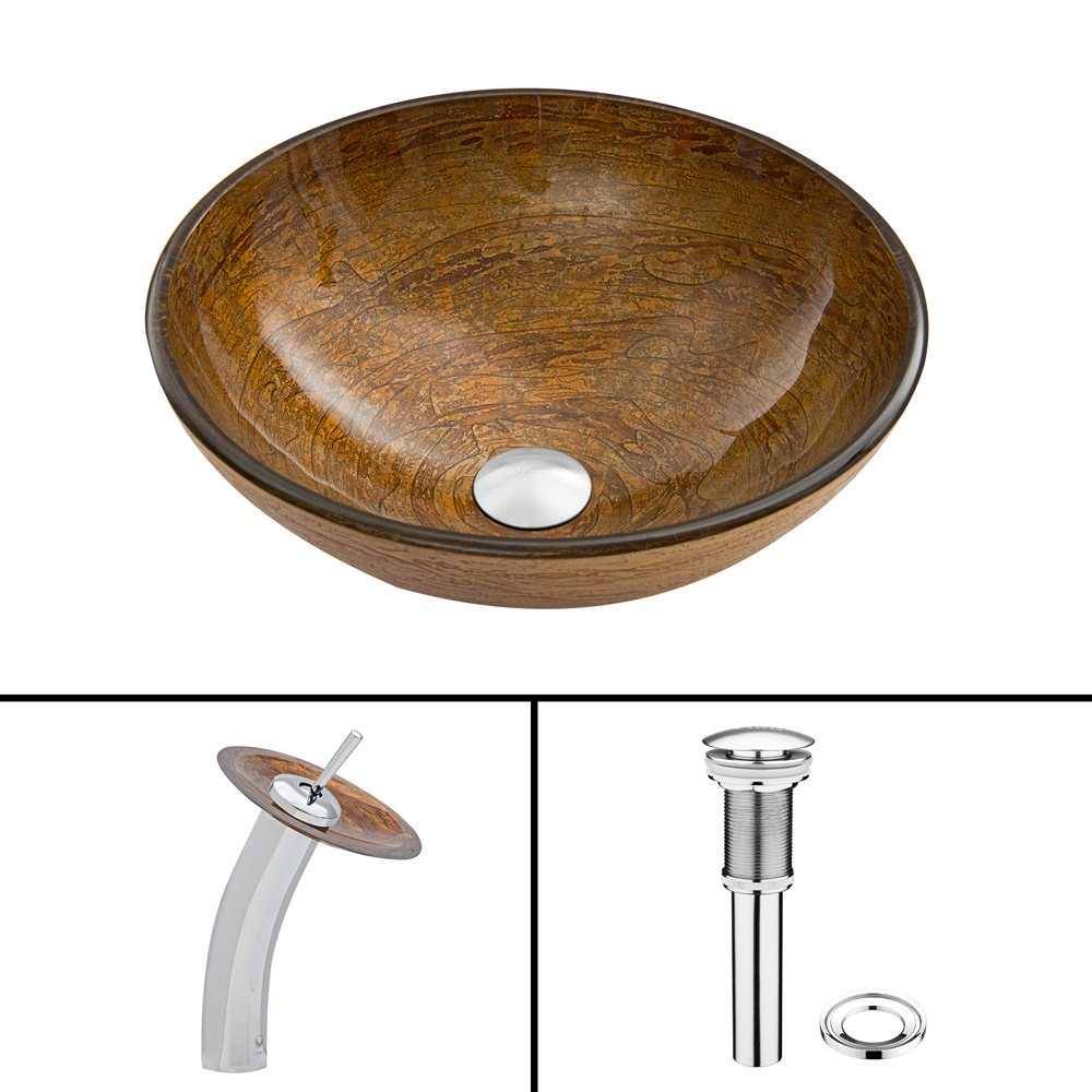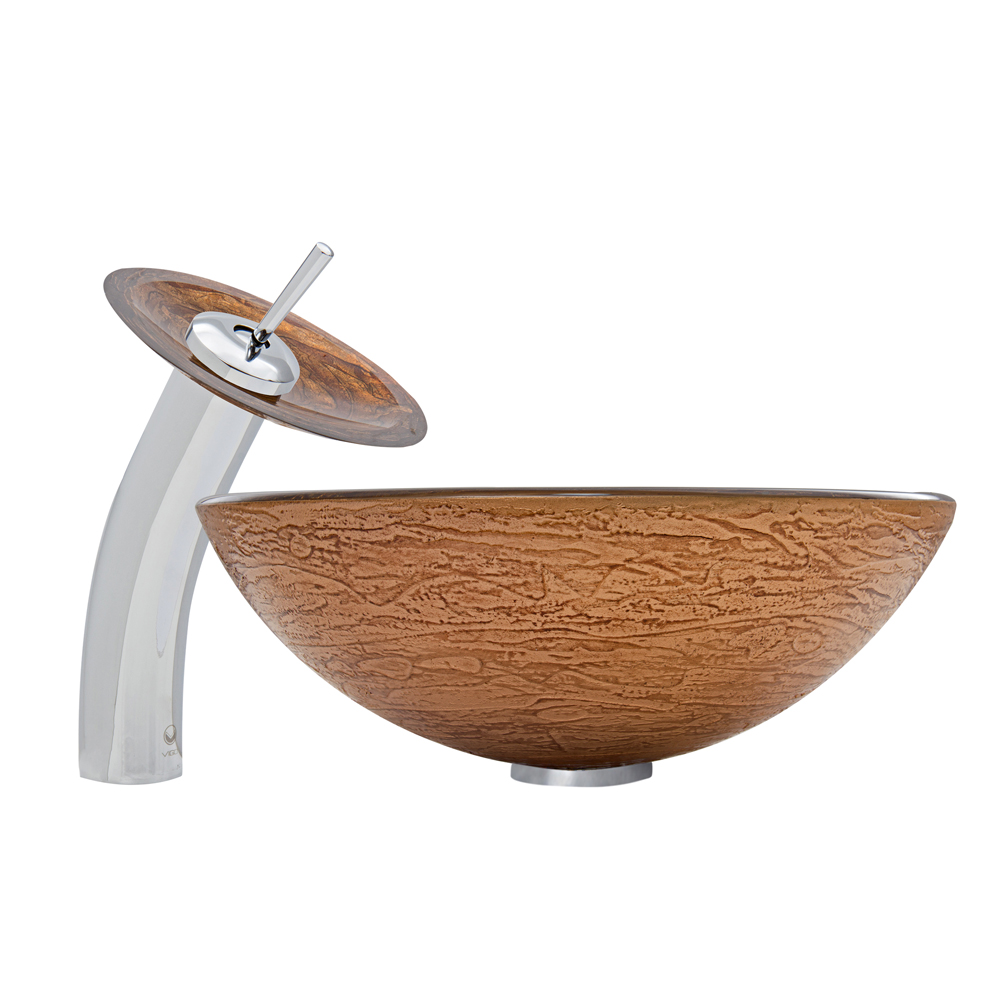 The VIGO Cappuccino Swirl Glass Vessel Sink and Waterfall Faucet Set in Chrome Finish will awaken your décor with smooth and stylish design.