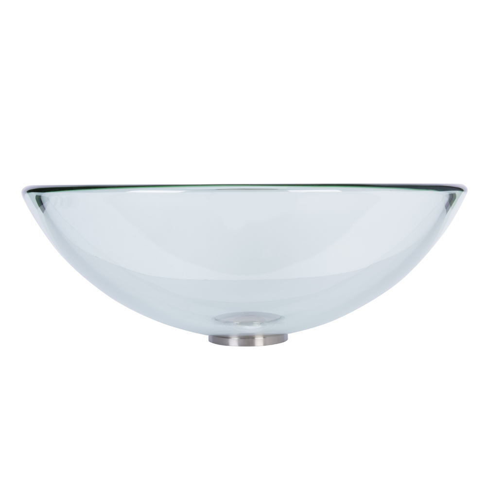 The VIGO Crystalline glass vessel sink is a clear reflection on the counter of your bathroom. The transparent glass is smooth and sleek allowing reflections to bounce off it's surface.