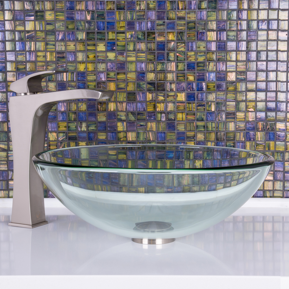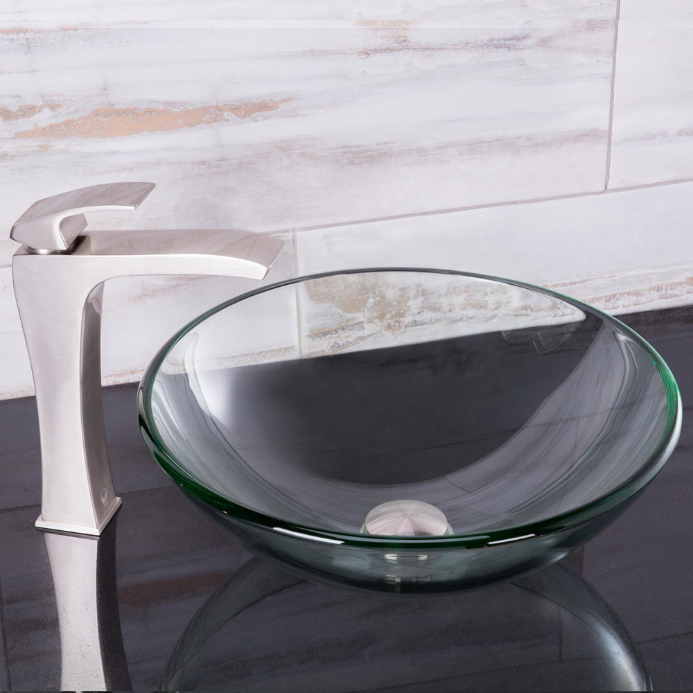 The VIGO VG07074 Crystalline glass vessel sink is a clear reflection on the counter of your bathroom. The transparent glass is smooth and sleek allowing reflections to bounce off it's surface.