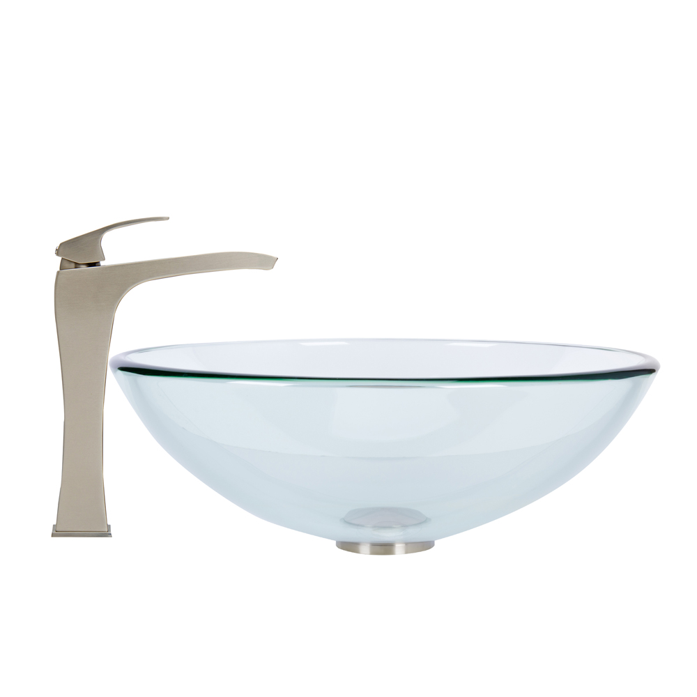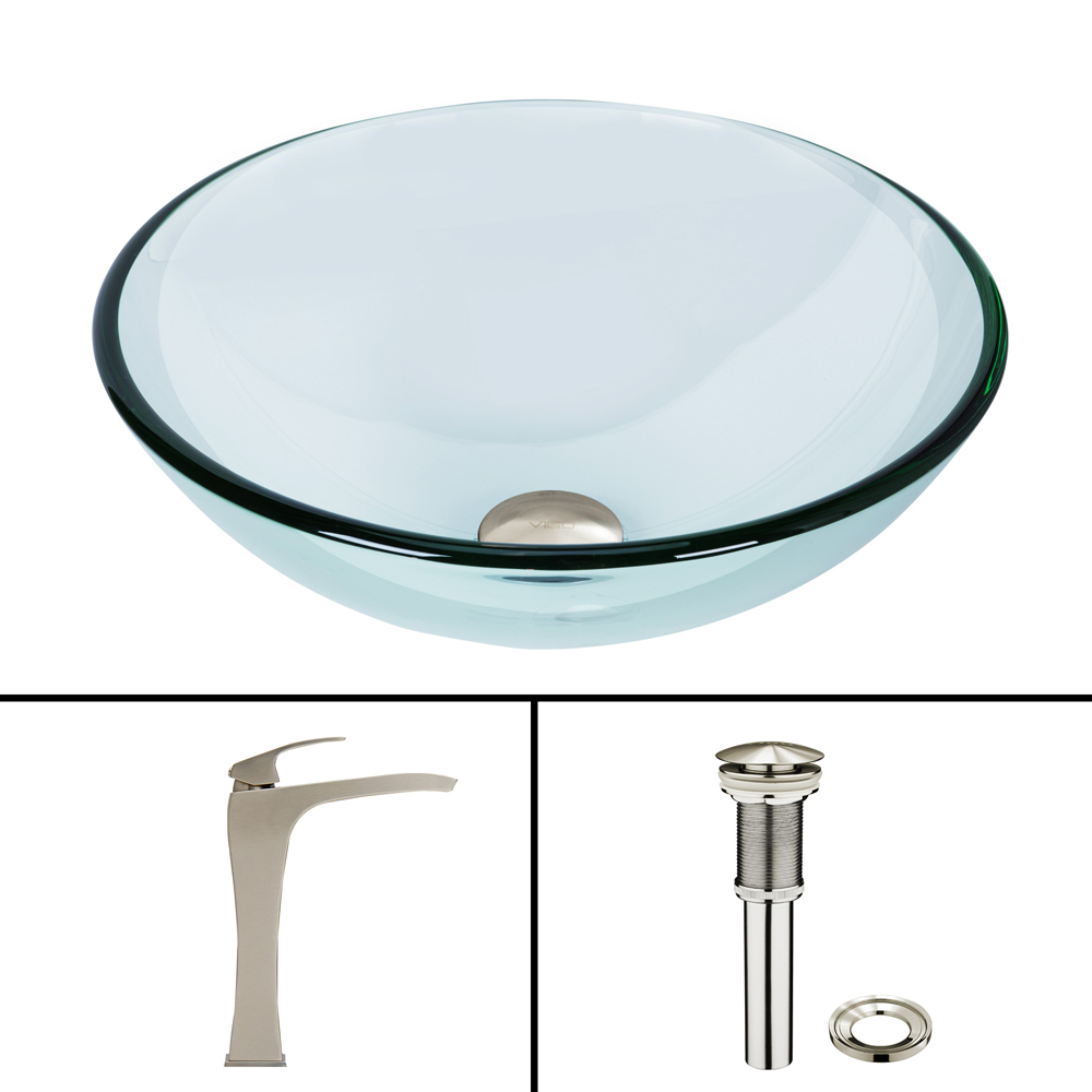 The VIGO Crystalline Glass Vessel Sink and Blackstonian Vessel Sink in a Brushed Nickel Finish is a luxurious and refreshing addition to any bathroom.
