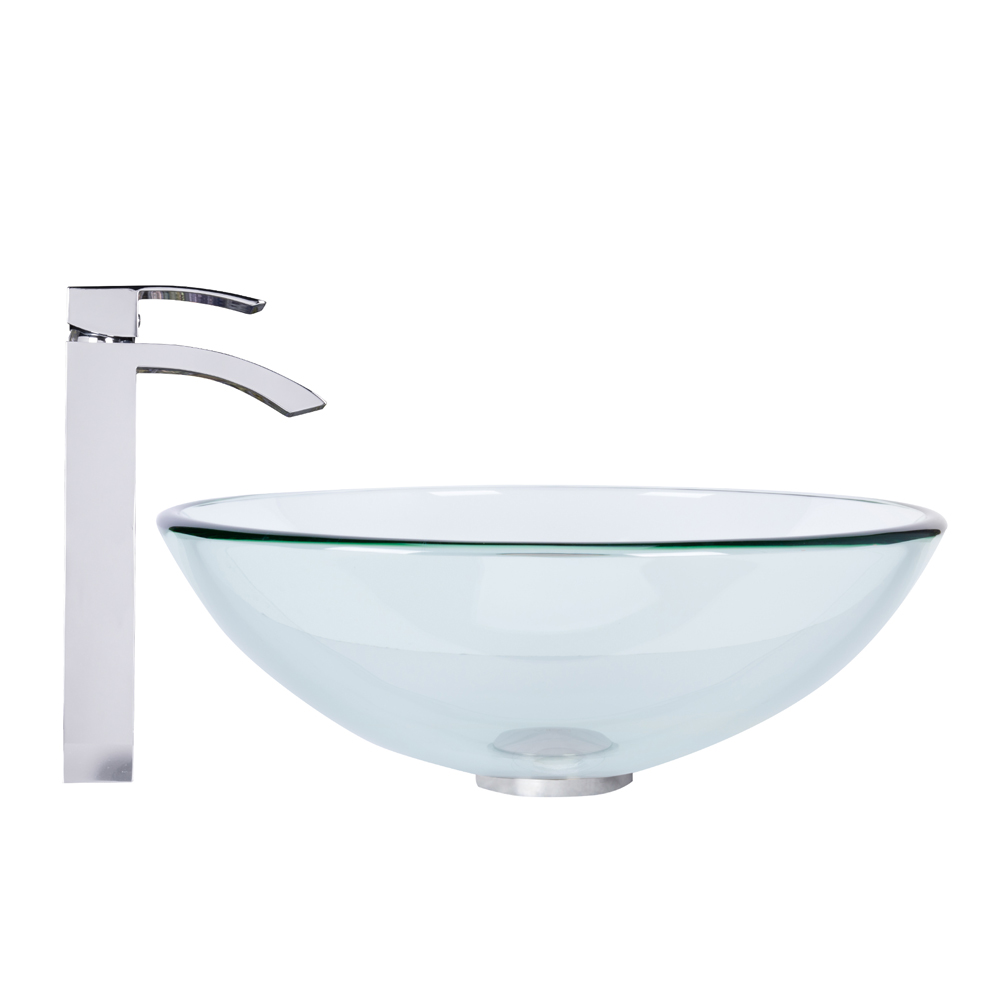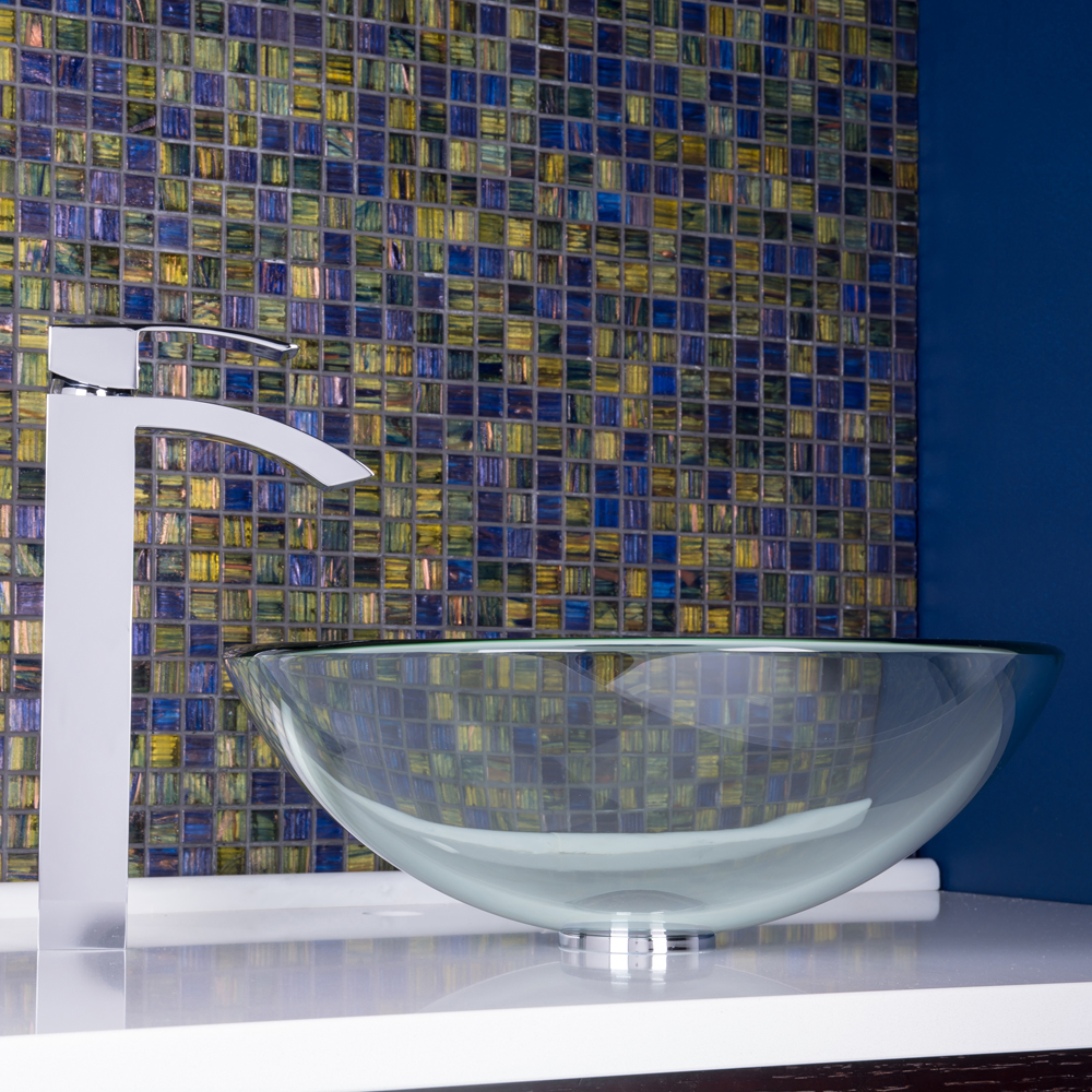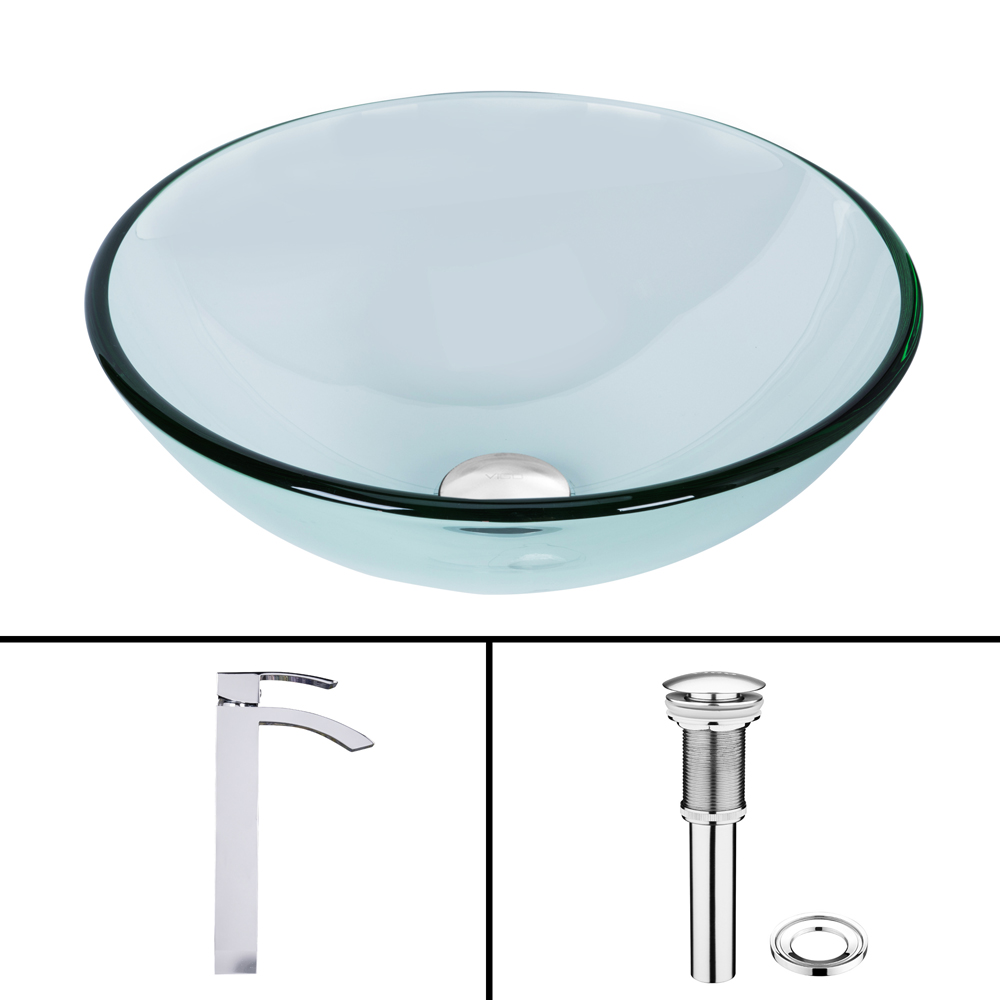 The VIGO Crystalline Glass Vessel Sink and Duris Vessel Sink in a Chrome Finish is a luxurious and refreshing addition to any bathroom.