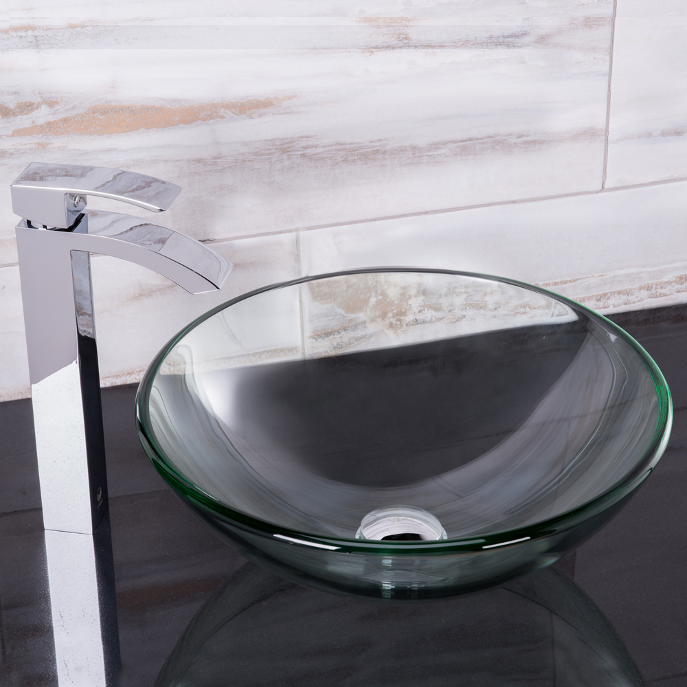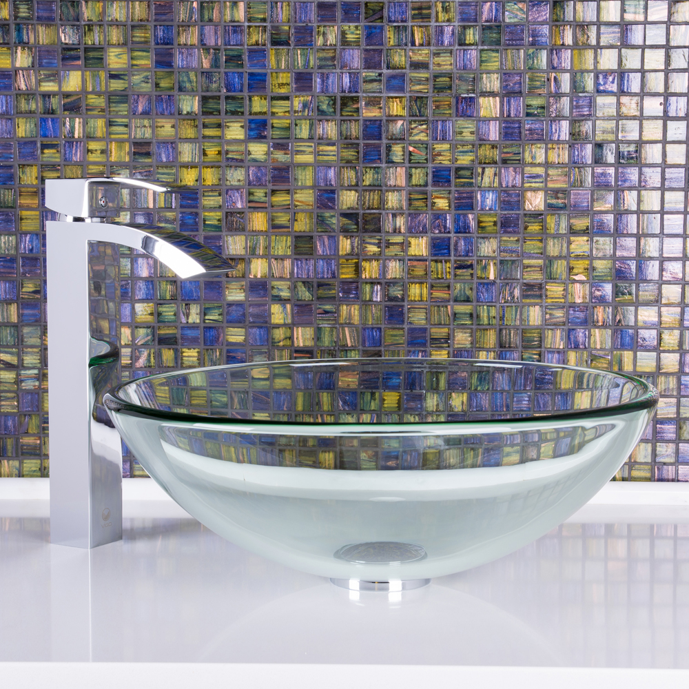 The VIGO VG07074 Crystalline glass vessel sink is a clear reflection on the counter of your bathroom. The transparent glass is smooth and sleek allowing reflections to bounce off it's surface.