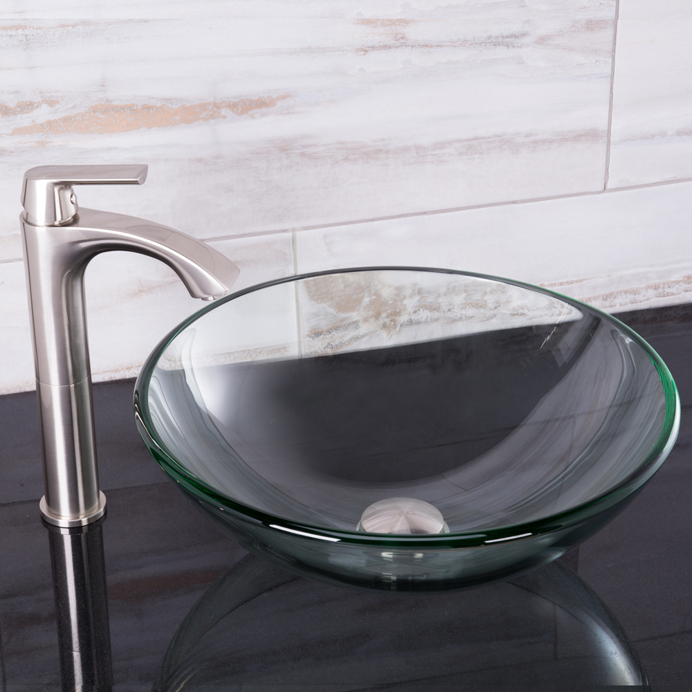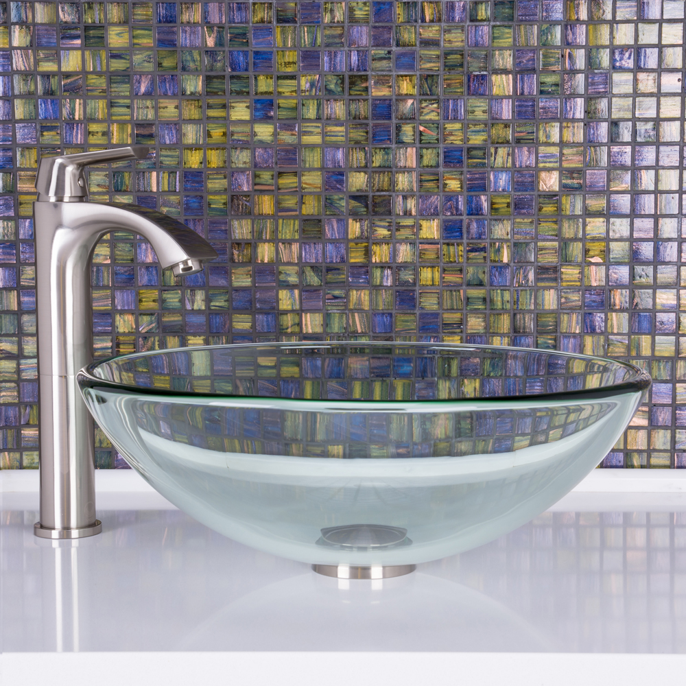 The VIGO VG07074 Crystalline glass vessel sink is a clear reflection on the counter of your bathroom. The transparent glass is smooth and sleek allowing reflections to bounce off it's surface.