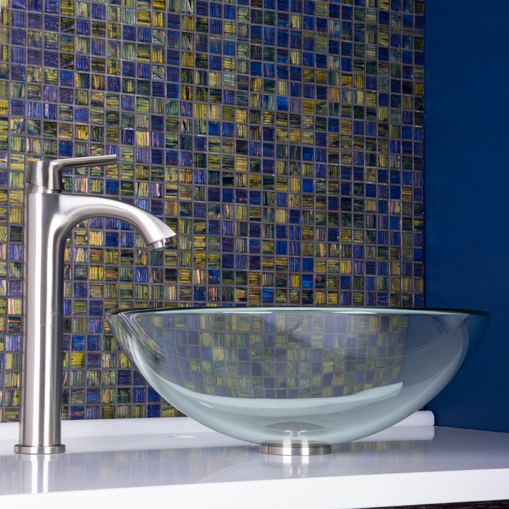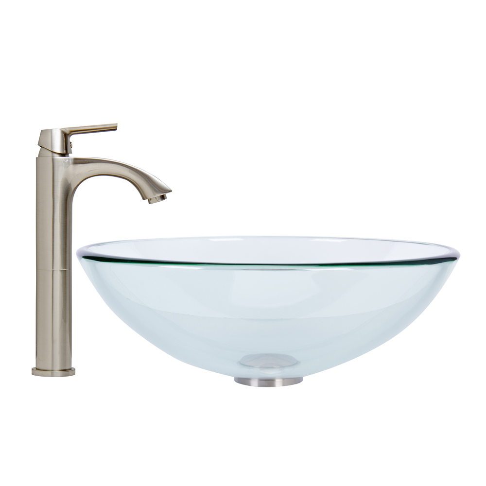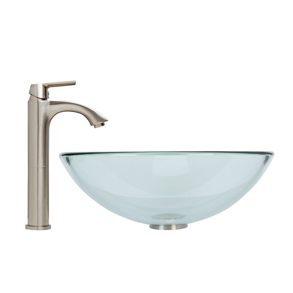 The VIGO Crystalline Glass Vessel Sink and Linus Vessel Sink in a Brushed Nickel Finish is a luxurious and refreshing addition to any bathroom.