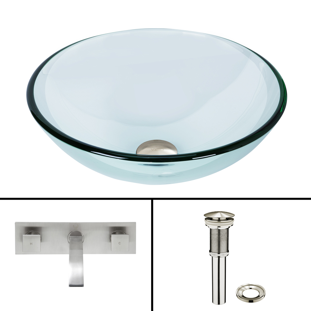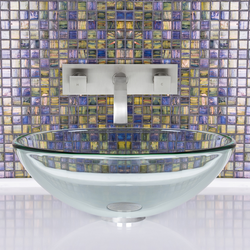 The VIGO Crystalline Glass Vessel Sink and a Titus Wall Mount in a Brushed Nickel Finish is a luxurious and refreshing addition to any bathroom.