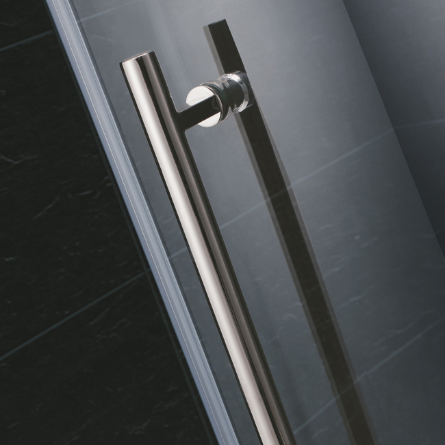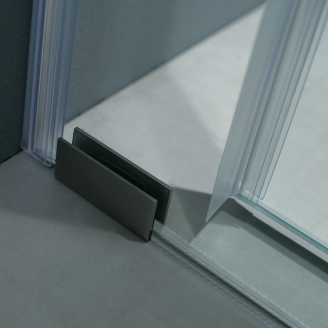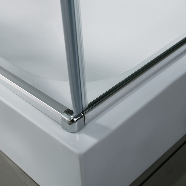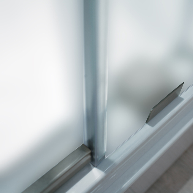 Full-length clear seals make the shower waterproof where door and side panel overlap