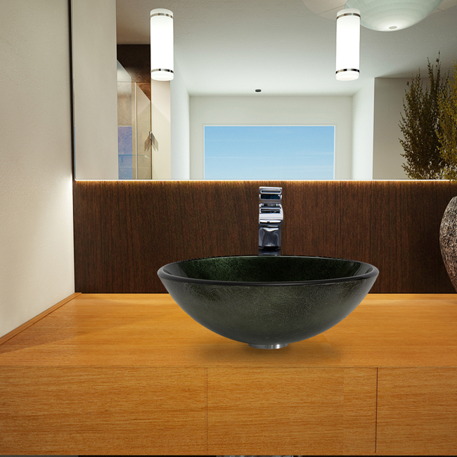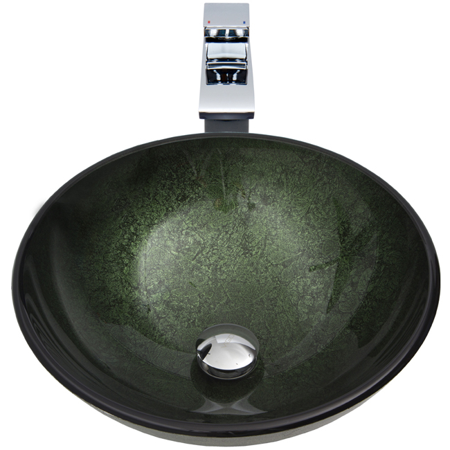 The VG07504 glass vessel bowl shines like a gem, featuring a rich and bold green color, resembling a true emerald precious stone.