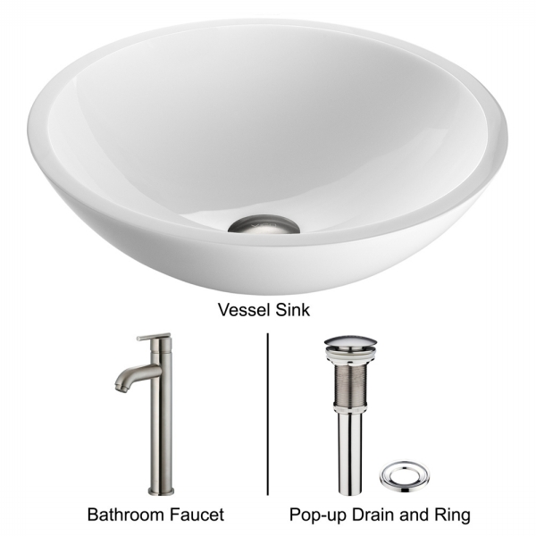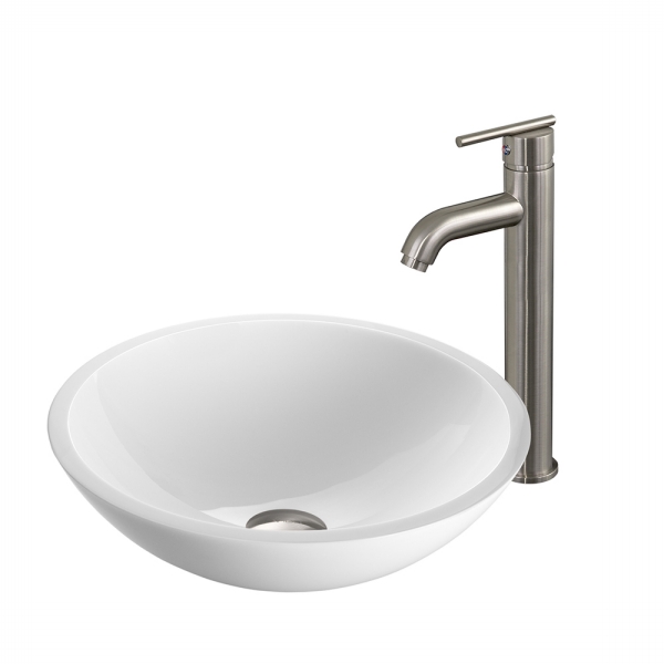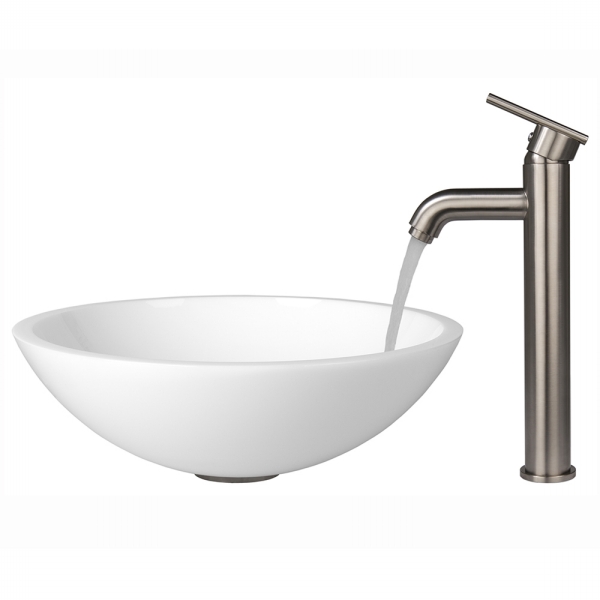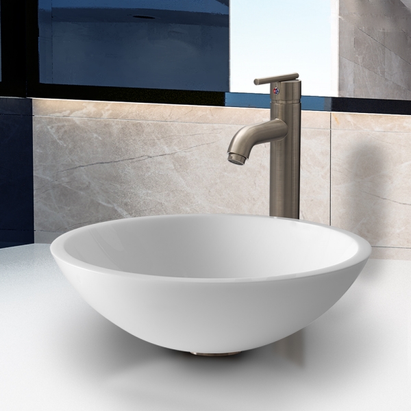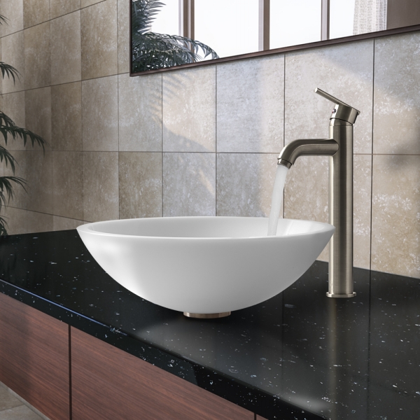 The VIGO Flat Edged White Phoenix Stone Glass Vessel Sink with