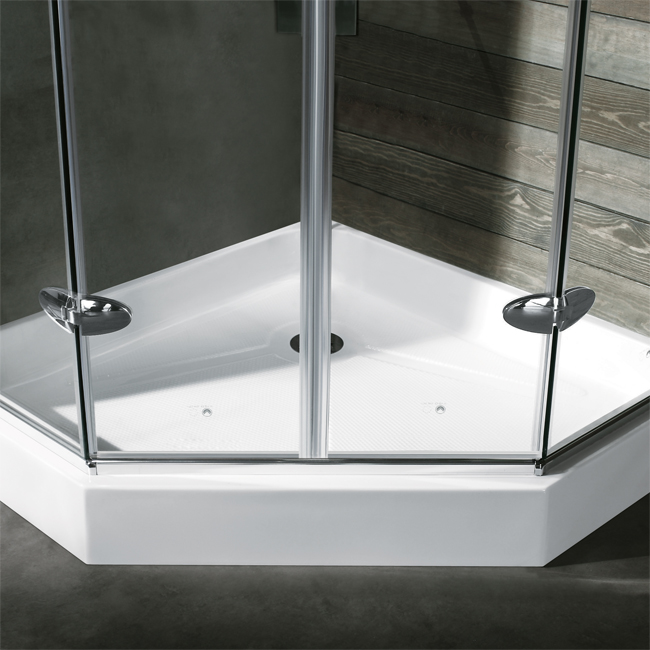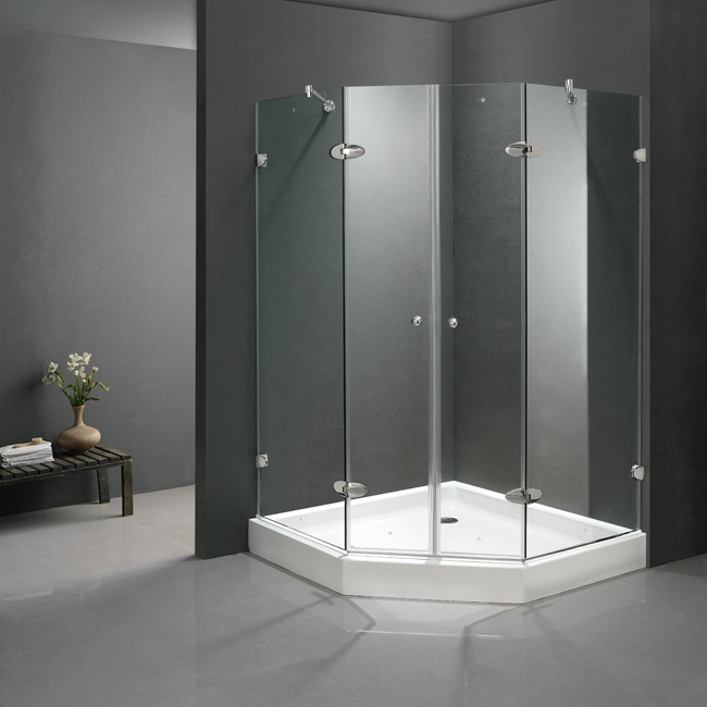 Both dramatic and space-saving, the Vigo frameless neo-angle shower enclosure creates a beautiful focal point for your bathroom.