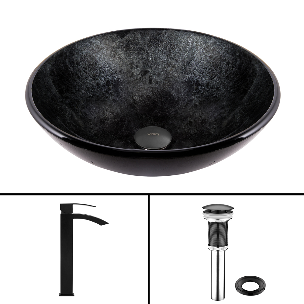 The VIGO Gray Onyx Glass Vessel Sink and Duris Faucet Set in Matte Black Finish provides any bathroom with a unique and distinctive style.