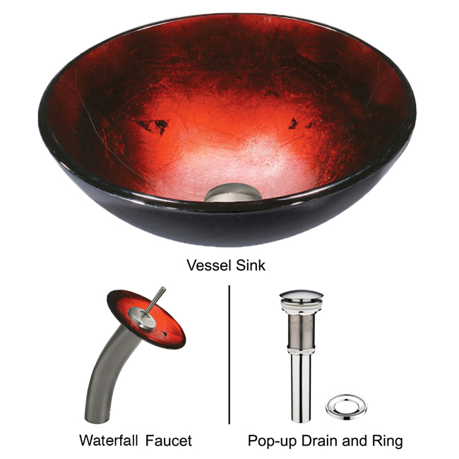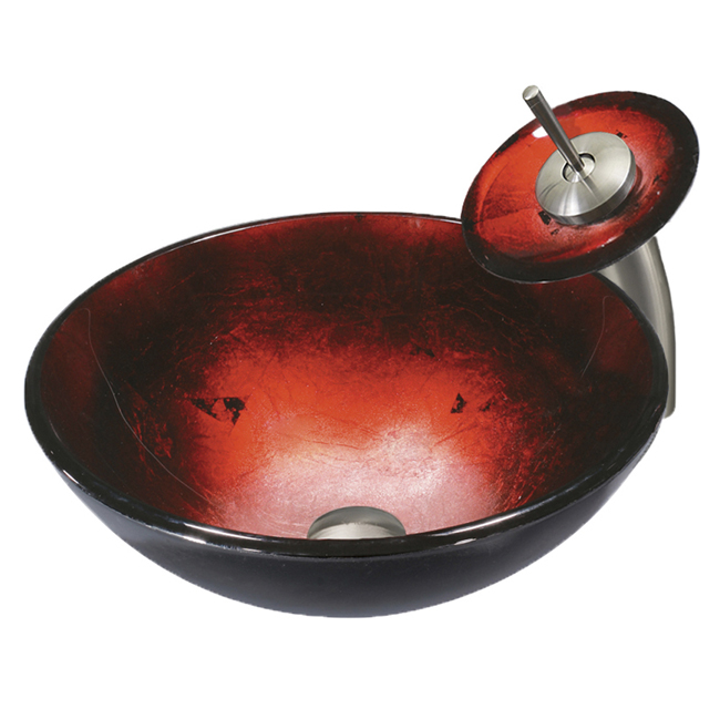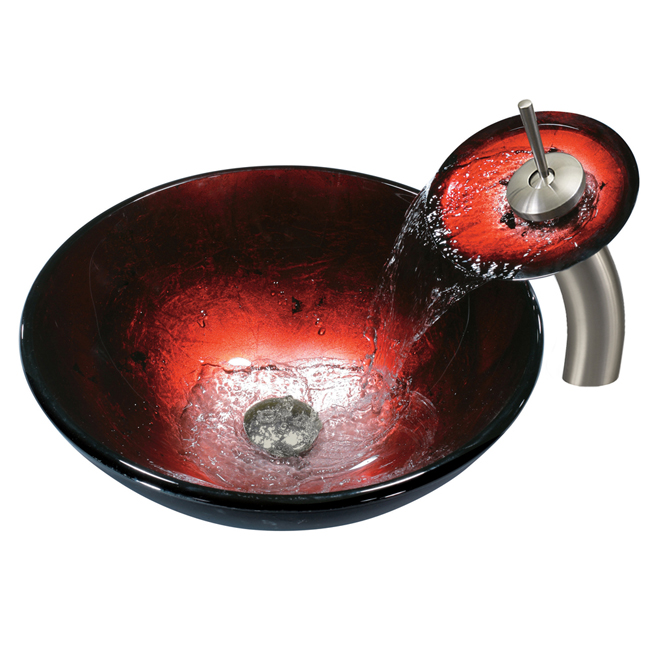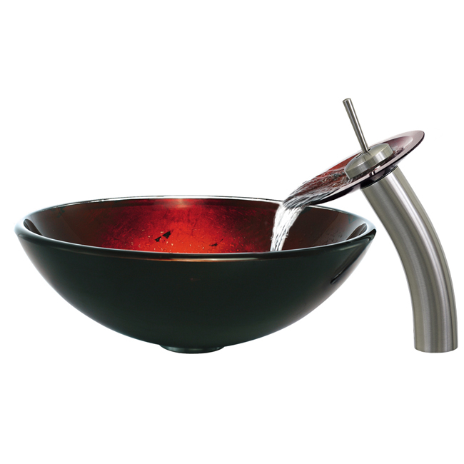 The VIGO Inferno glass vessel sink and waterfall faucet set will