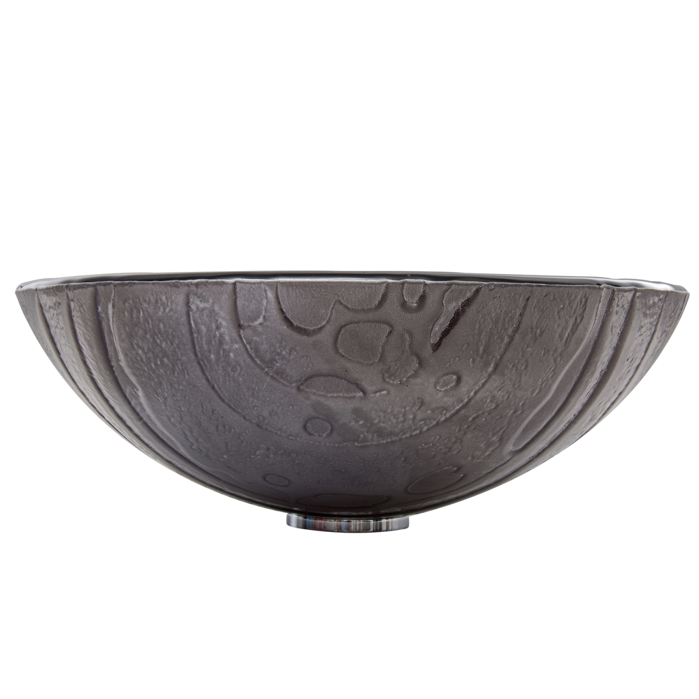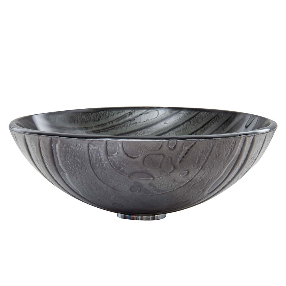 The VG07059 Interspace glass vessel bowl features dark black and gray curves, along with hints of silver that look out of this world.