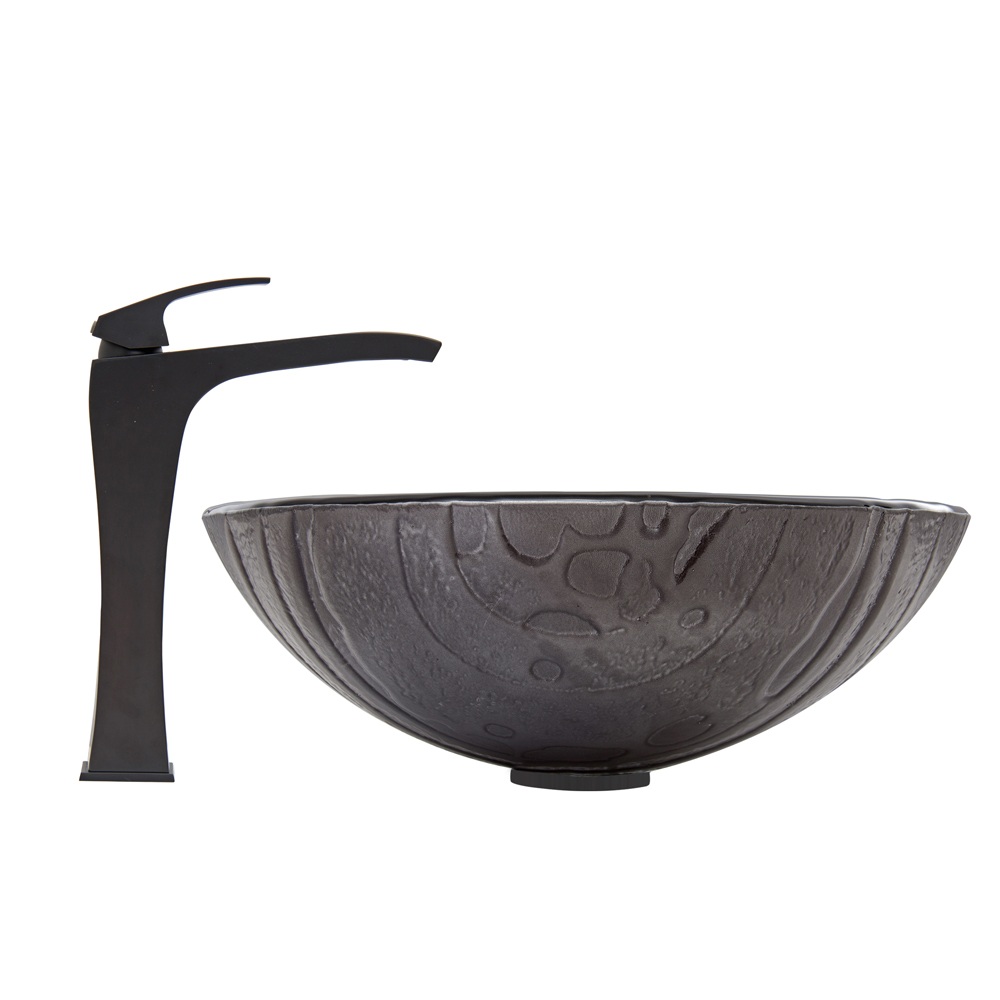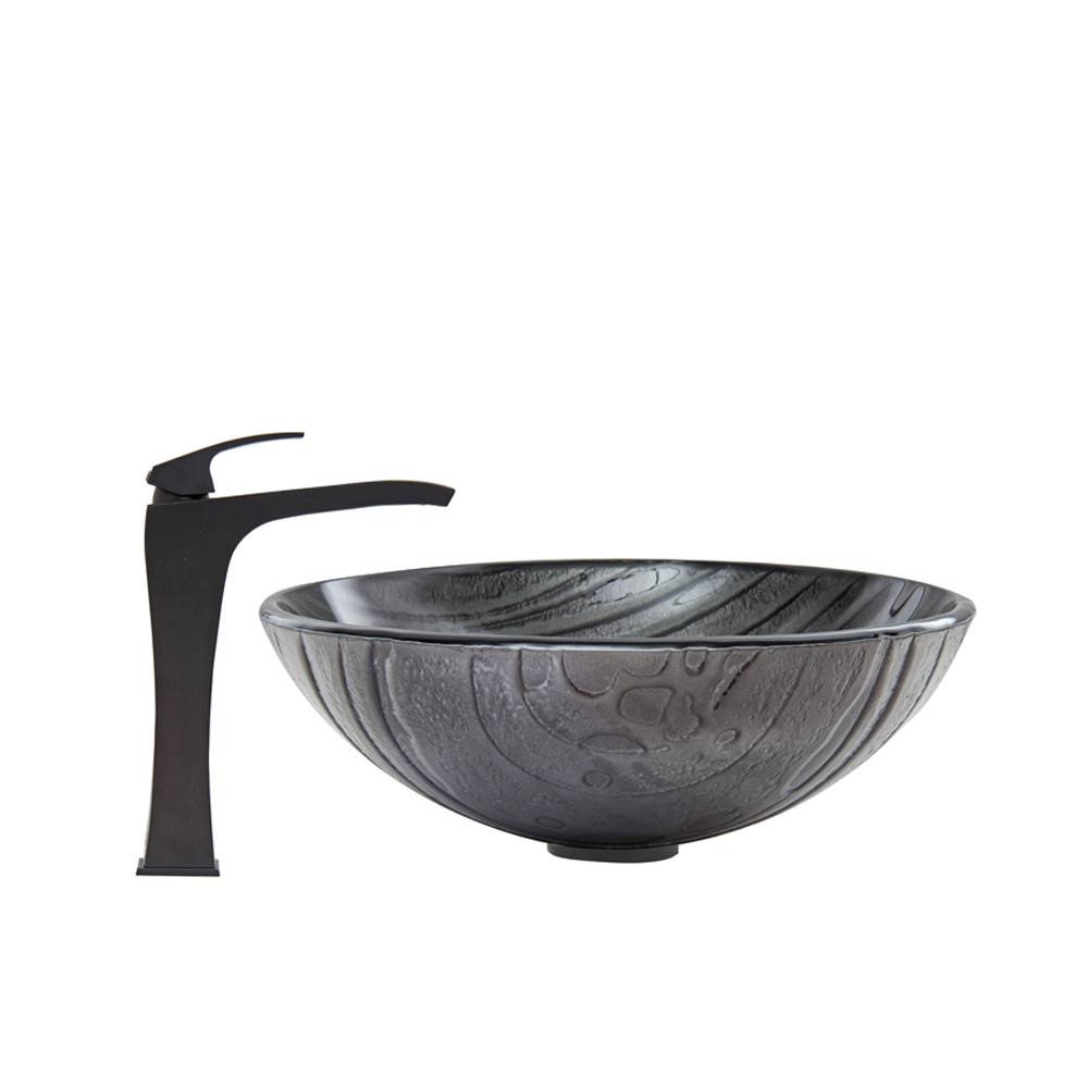 The VG07059 Interspace glass vessel bowl features dark black and gray curves, along with hints of silver that look out of this world.