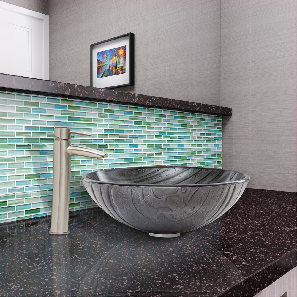 The VIGO Interspace Glass Vessel Sink and Shadow Faucet Set in Brushed Nickel Finish is certain to transform your bathroom into something out of this world.