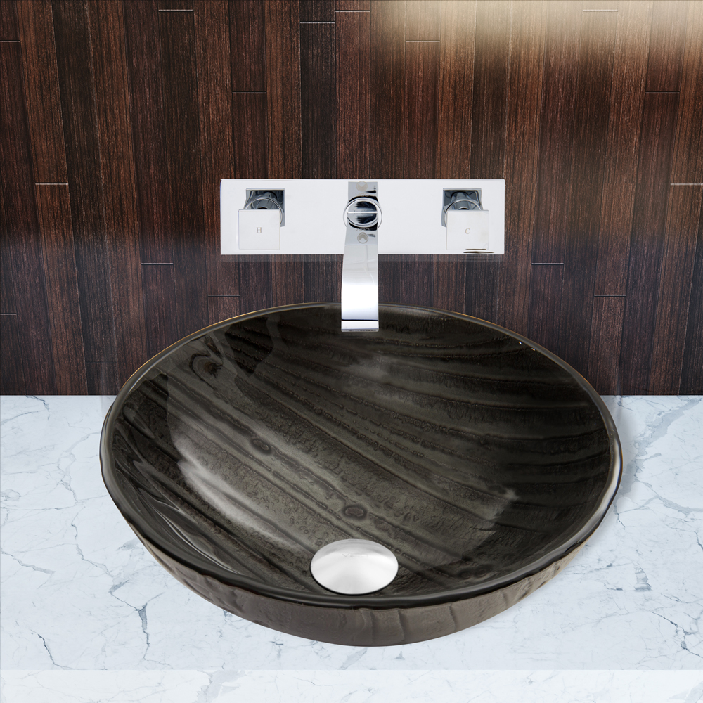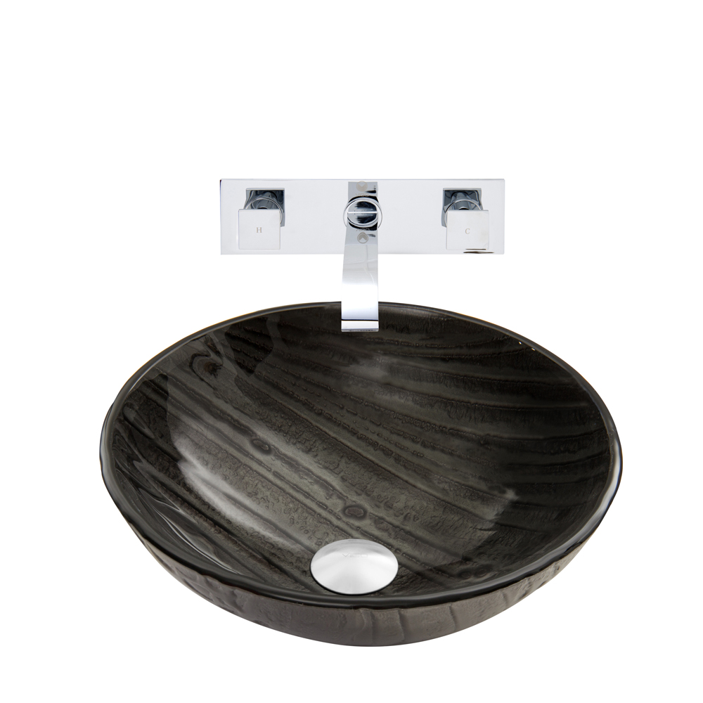 The VIGO Interspace Vessel Sink and Titus Wall Mount Faucet Set in Chrome adds a sophisticated touch of elegance to your bathroom.