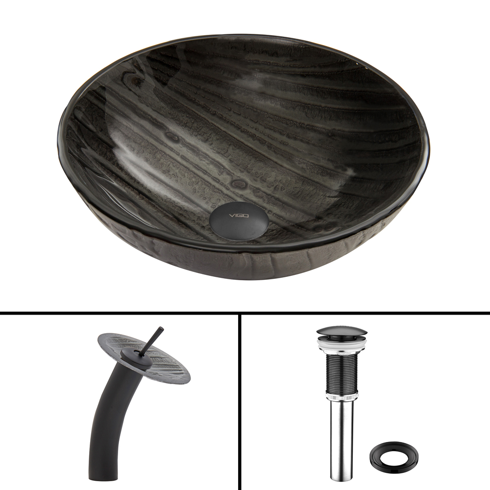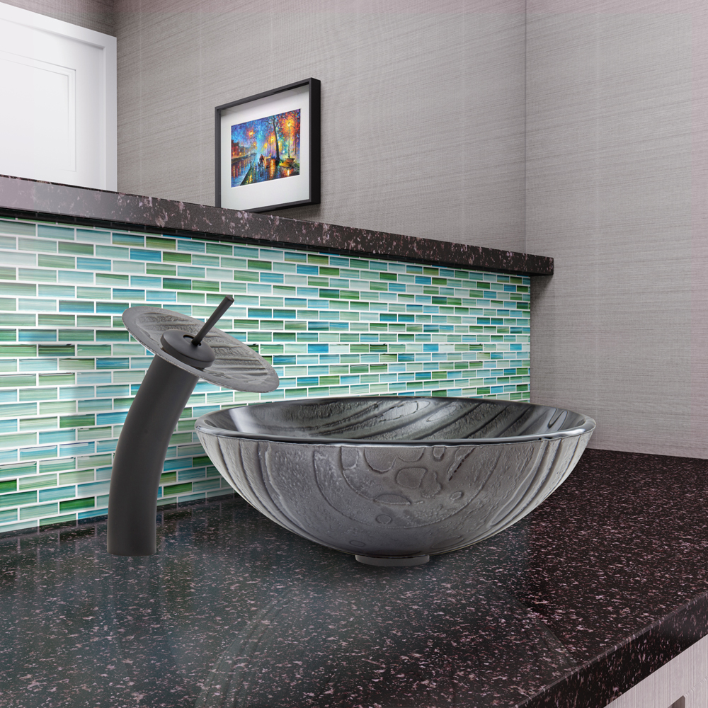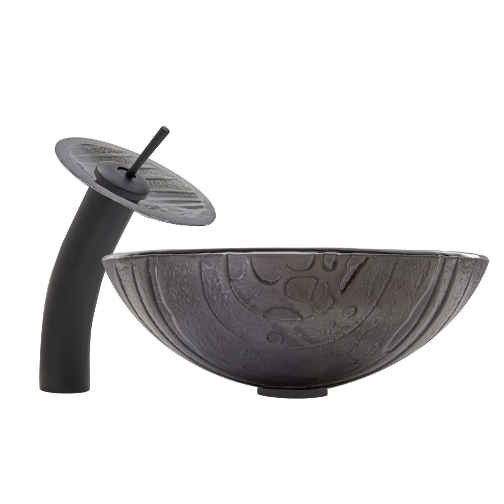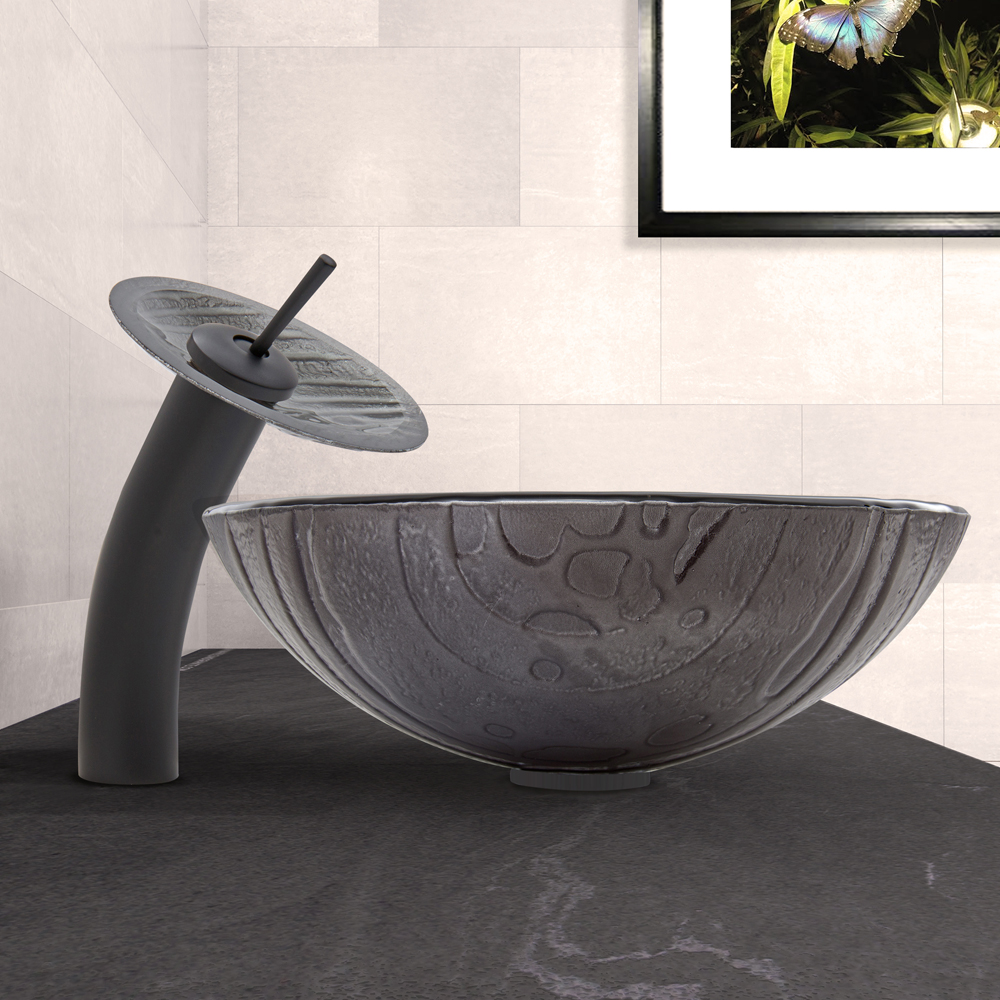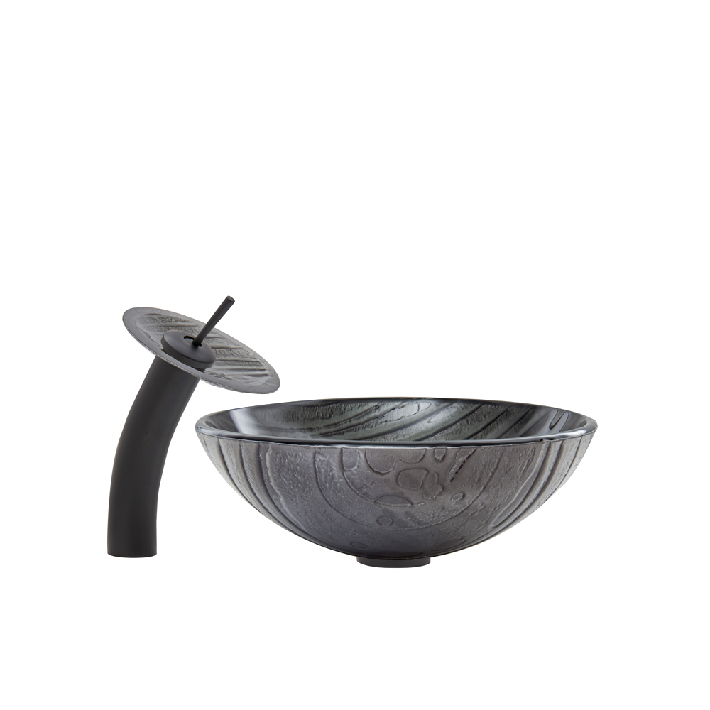 Put a piece of the galaxy in your new bathroom with the VIGO Interspace vessel sink and matching waterfall faucet in matte black. This sink and faucet set has dark blacks and gray curves along with hints of silver that look out of this world.