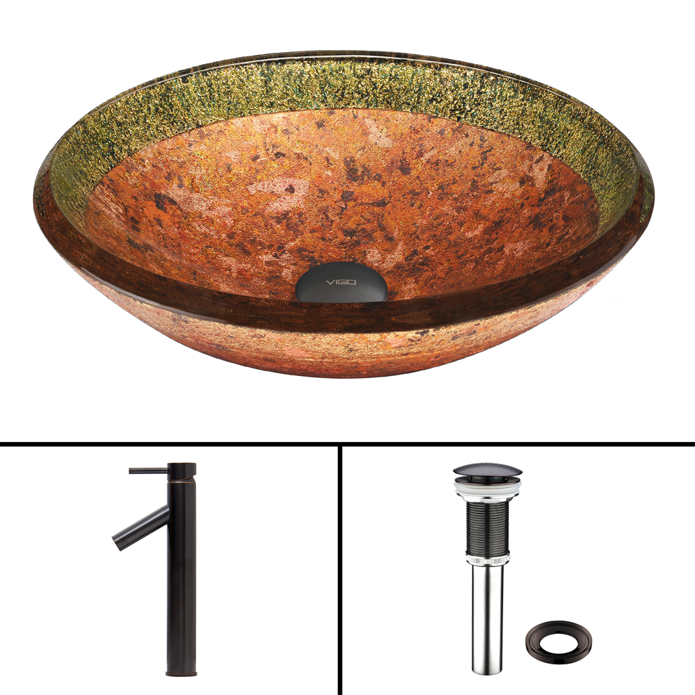 The VIGO Janus Glass Vessel Sink and Dior Faucet Set in Antique Rubbed Bronze Finish is sure to provide an eye-catching and luxurious style to your bathroom.