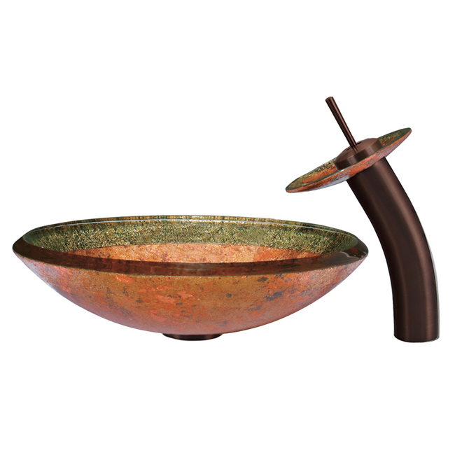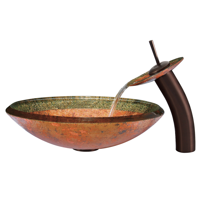 The VIGO Janus glass vessel sink and waterfall faucet set