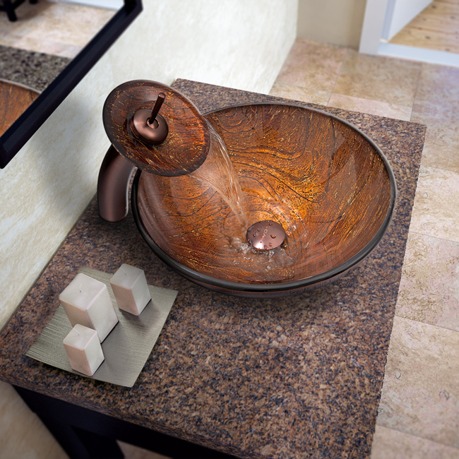 The VIGO Kenyan Twilight glass vessel sink and