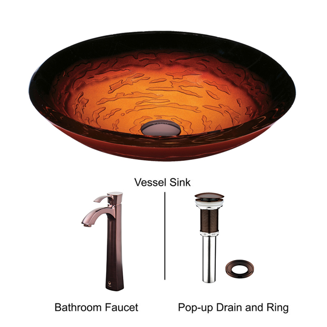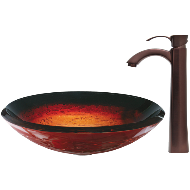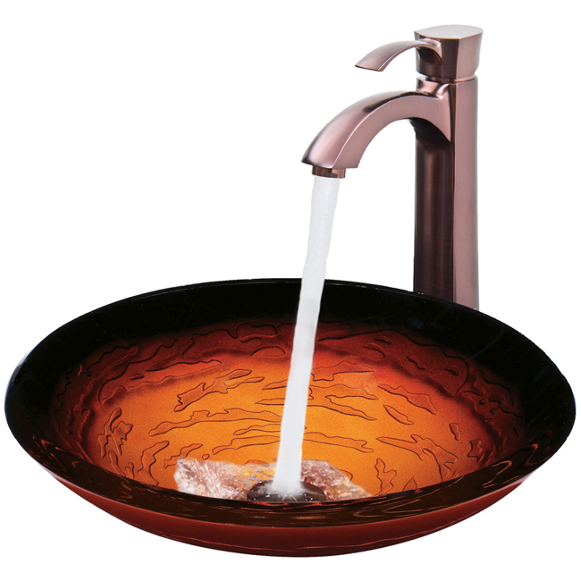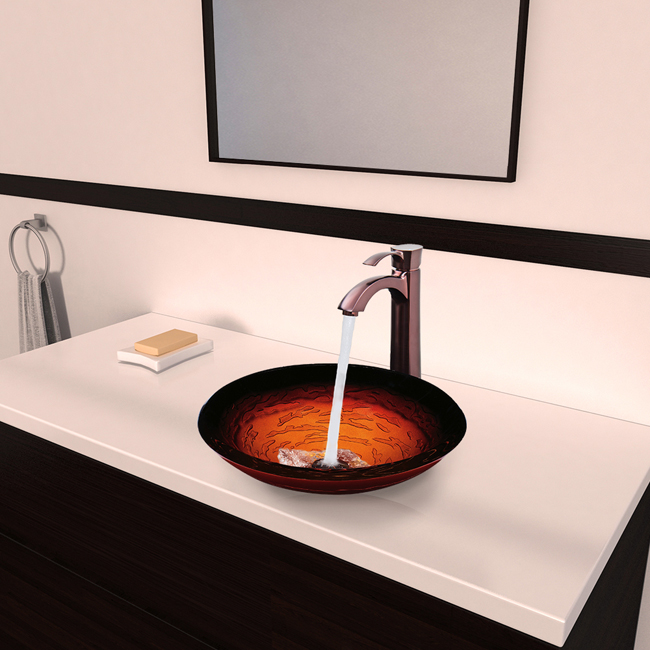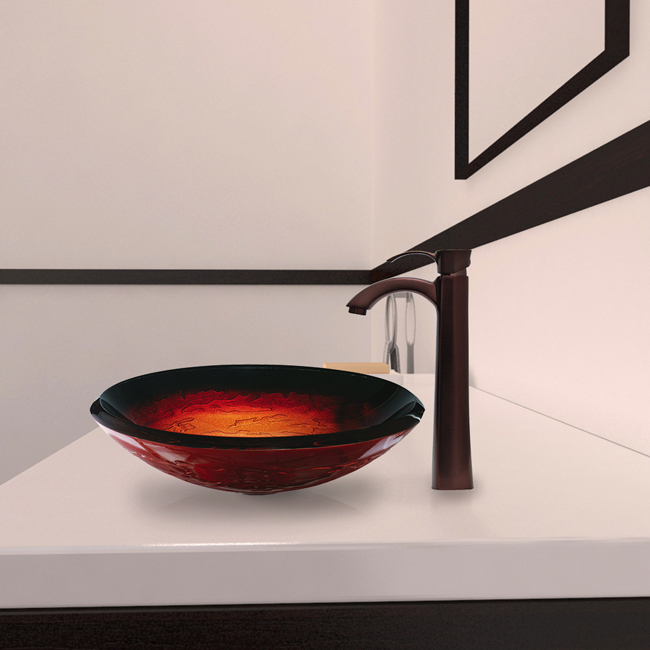 The VIGO Magma glass vessel sink and Otis faucet set in Oil Rubbed Bronze is a modern addition to your home.