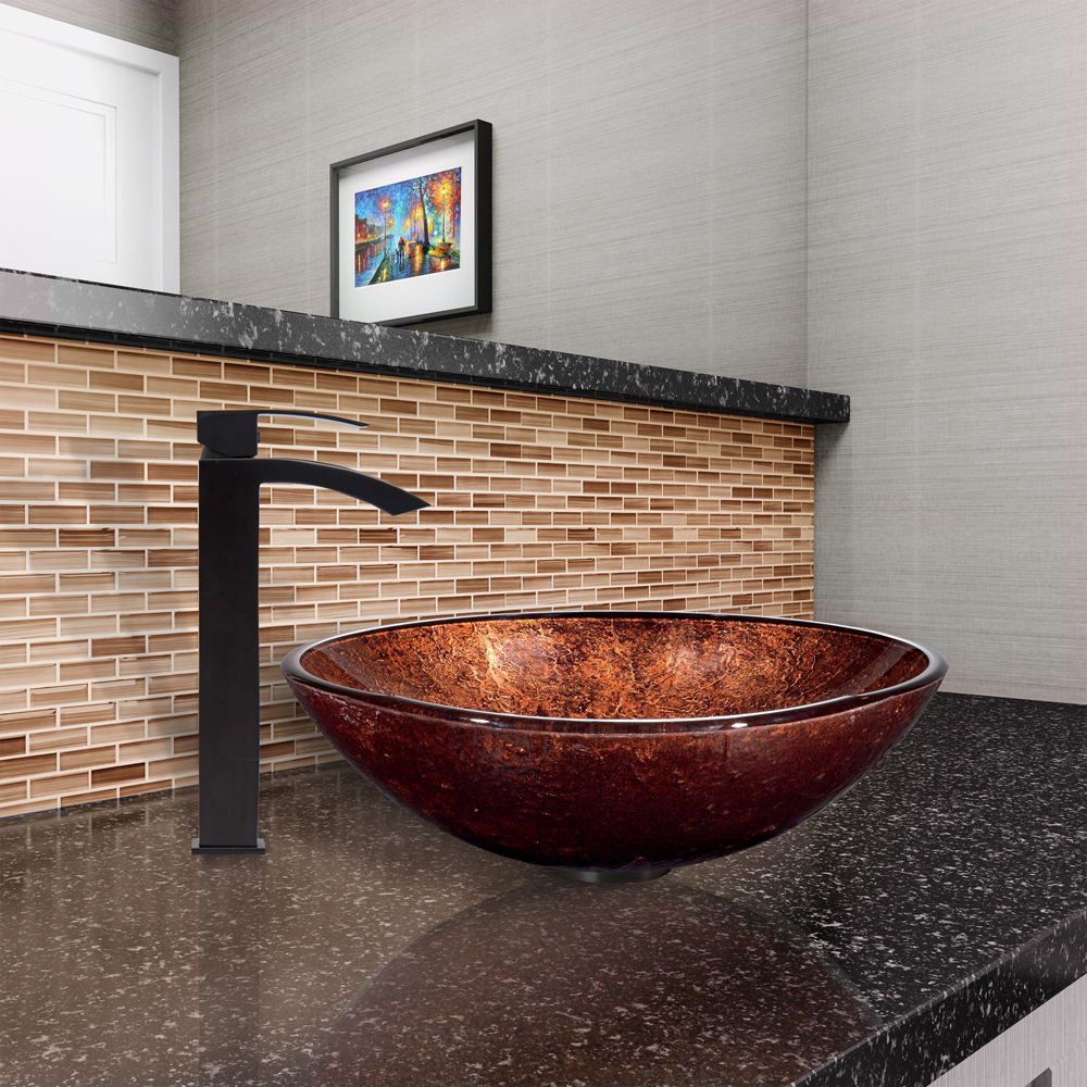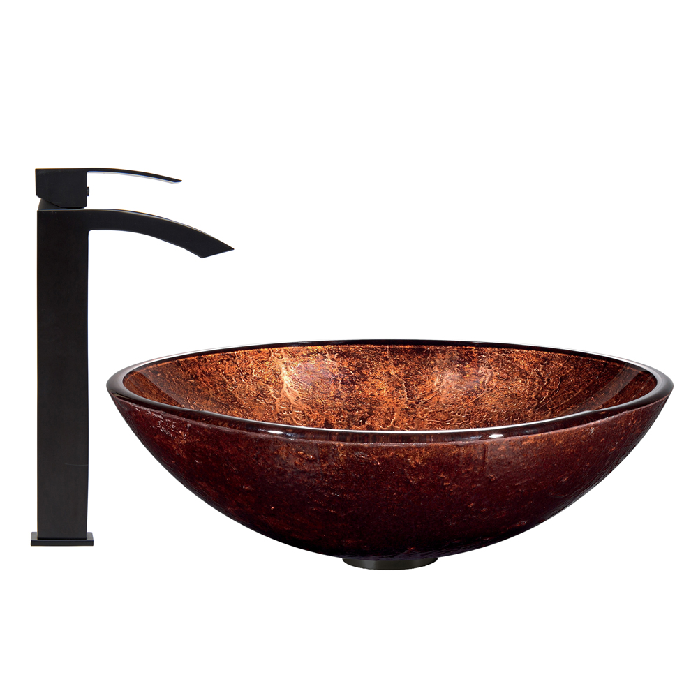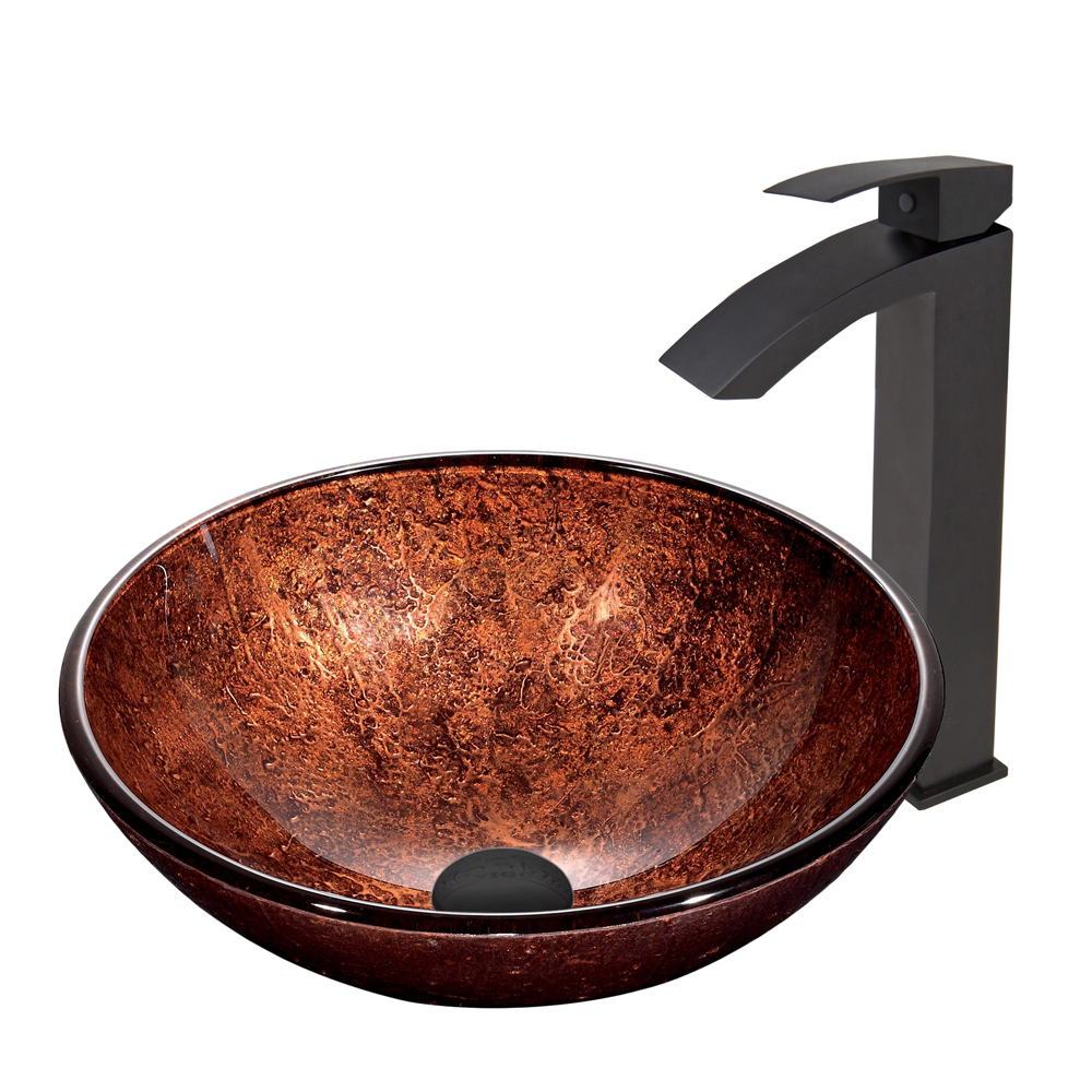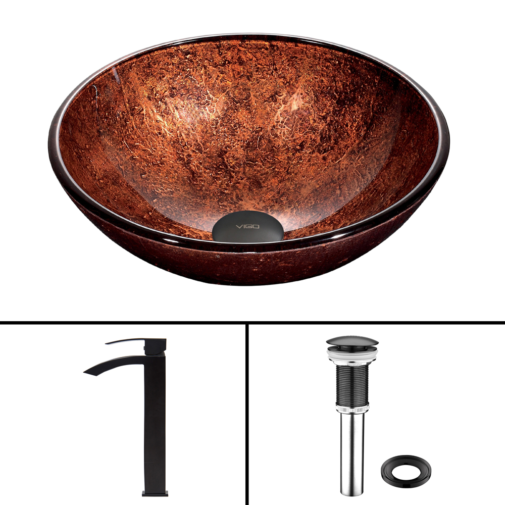 The VIGO Mahogany Moon Glass Vessel Sink and Duris Faucet Set in Matte Black Finish will bring your bathroom the striking design and modern look it is missing.