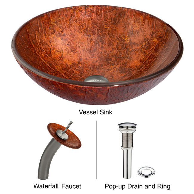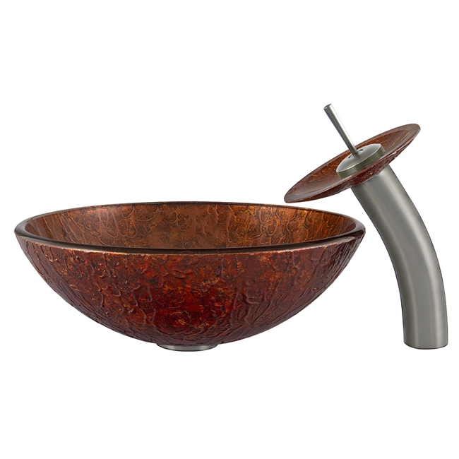matching waterfall faucet set will bring an earthy elegance to your bathroom.