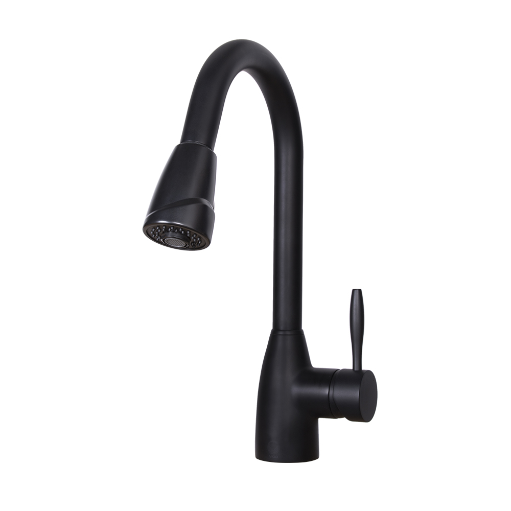 With its high-arch spout and single lever handle, the Graham has an eye-catching look that complements your kitchen’s personality. The pull-down sprayer allows water to reach all corners of the sink and makes cleaning bulkier pots and pans easy. The spout swivels 360 degrees and the single lever handle allows for temperature and water pressure control in one smooth motion.