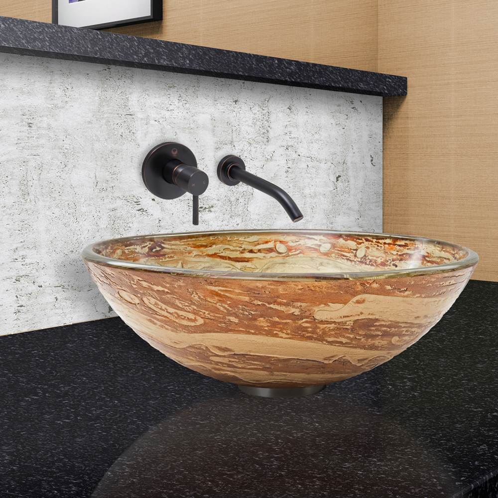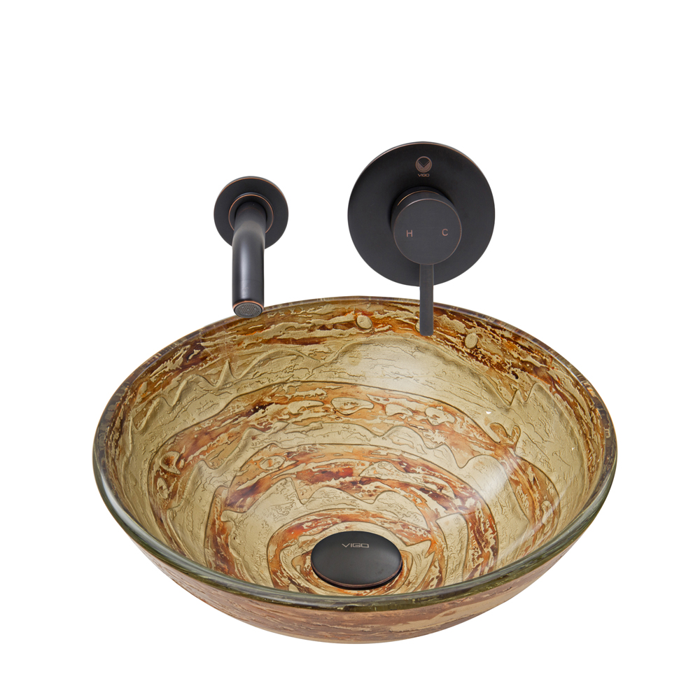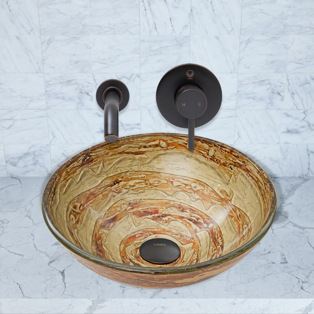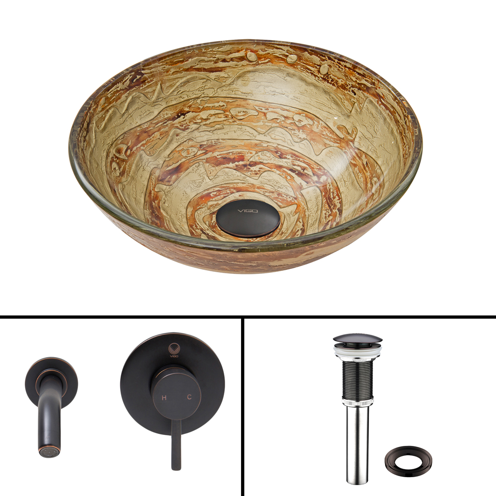 The VIGO Mocha Swirl Glass Vessel Sink and Olus Faucet Set in Antique Rubbed Finish is certain to be a tasteful elegance in your home.