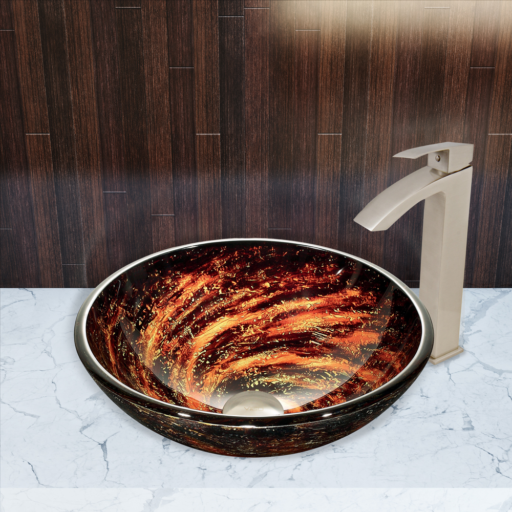 The VIGO Northern Lights Glass Vessel Sink and Duris Faucet Set in Brushed Nickel Finish will say a lot about your taste and style. You and Your friends are sure to love it!.