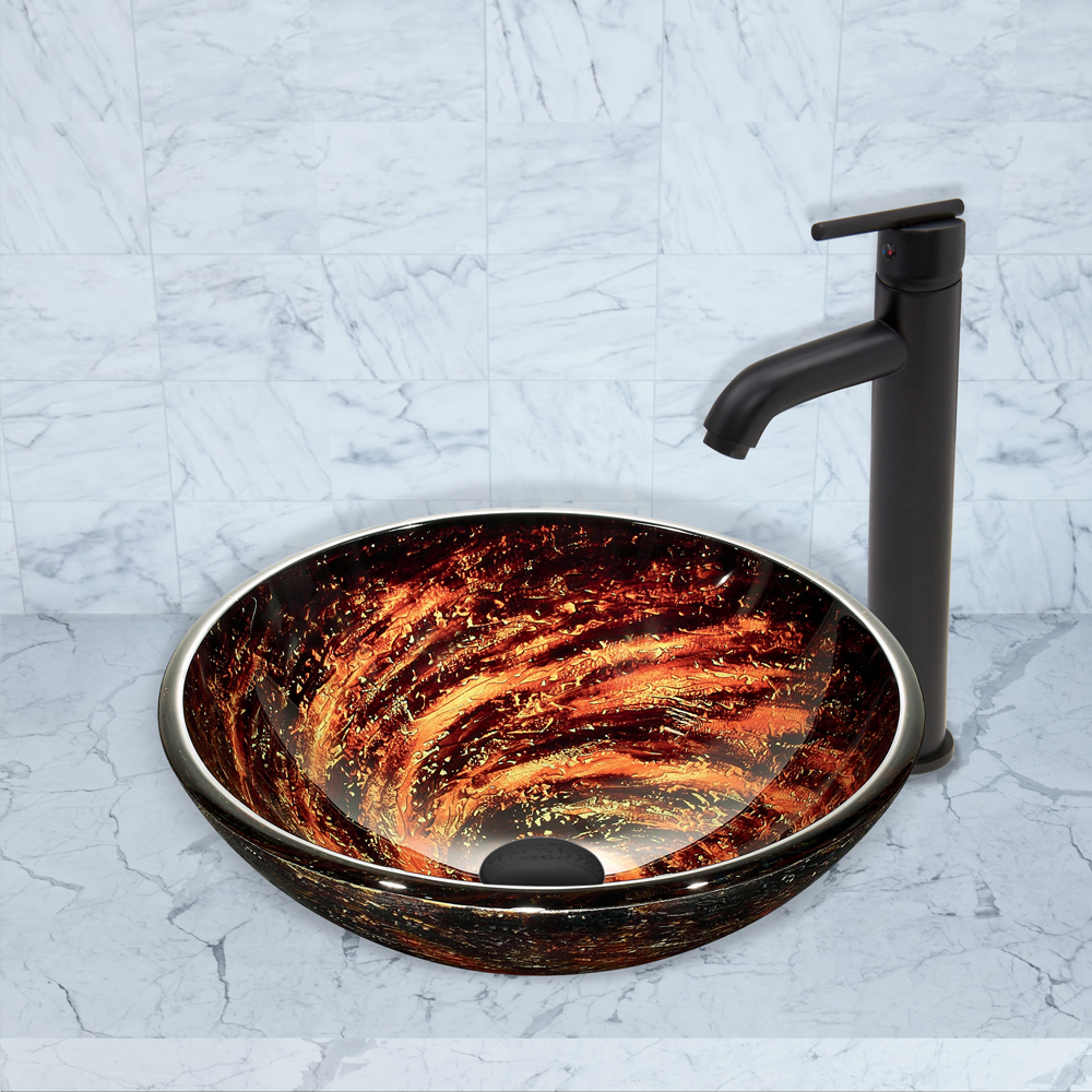 The VIGO Northern Lights Glass Vessel Sink and Seville Faucet Set in Matte Black Finish will say a lot about your taste and style. You and Your friends are sure to love it!.